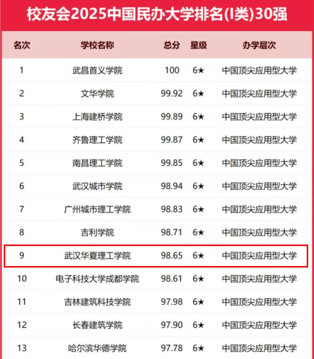 1月6日,艾瑞深校友会发布《校友会2025中国大学排名》。榜单显示,beat365位居校友会2025中国民办大学(I类)第九,同时被评为六星级中国顶尖应用型大学。这是beat365自2021年起,连续四年蝉联中国校友会中国民办大学(I类)排行榜第九名。