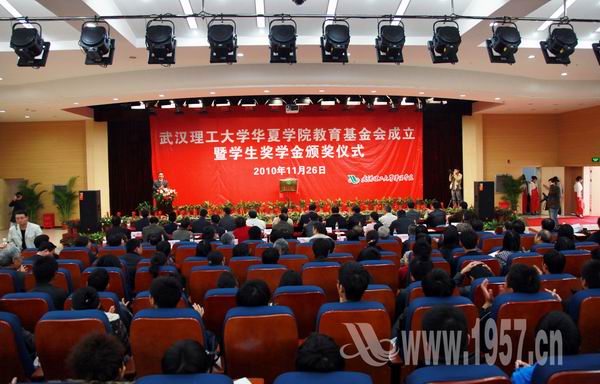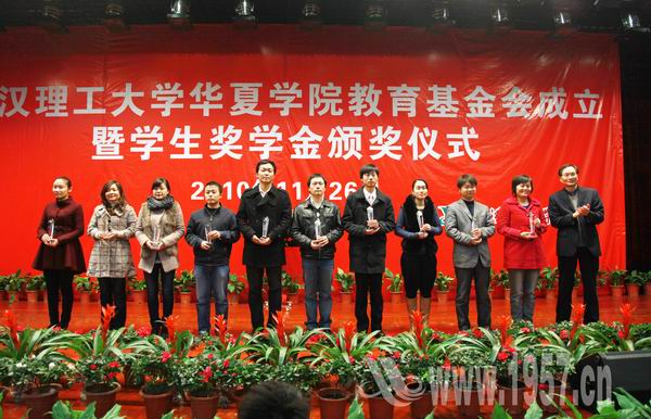 11月26日下午4点,武汉理工大学华夏学院学术报告厅高朋满座、热闹非凡。武汉理工大学华夏学院教育基金会成立暨学生奖学金颁奖仪式在这里隆重举行。湖北省民政厅副厅长文增显、武汉理工大学副校长严新平、新华社湖北分社纪委书记方政军、武汉当代科技发展总公司董事艾路明、湖北省民政厅民间组织管理处处长王斐遒 、武汉理工大学华夏学院董事长张晓东、武汉当代科技发展总公司董事刘家清、武汉人福医药集团股份有限公司董事长王学海、湖北省教育厅政策法规处苏清城、武汉思博睿科教发展投资公司副总经理皮勇建、武汉理工大学发展规划处办公室主任李峰、武汉理工大学教育基金会秘书长王锦华、学院奖学金资助单位、校企合作单位的领导出席了大会。仪式由院党委常务副书记张荣国主持。