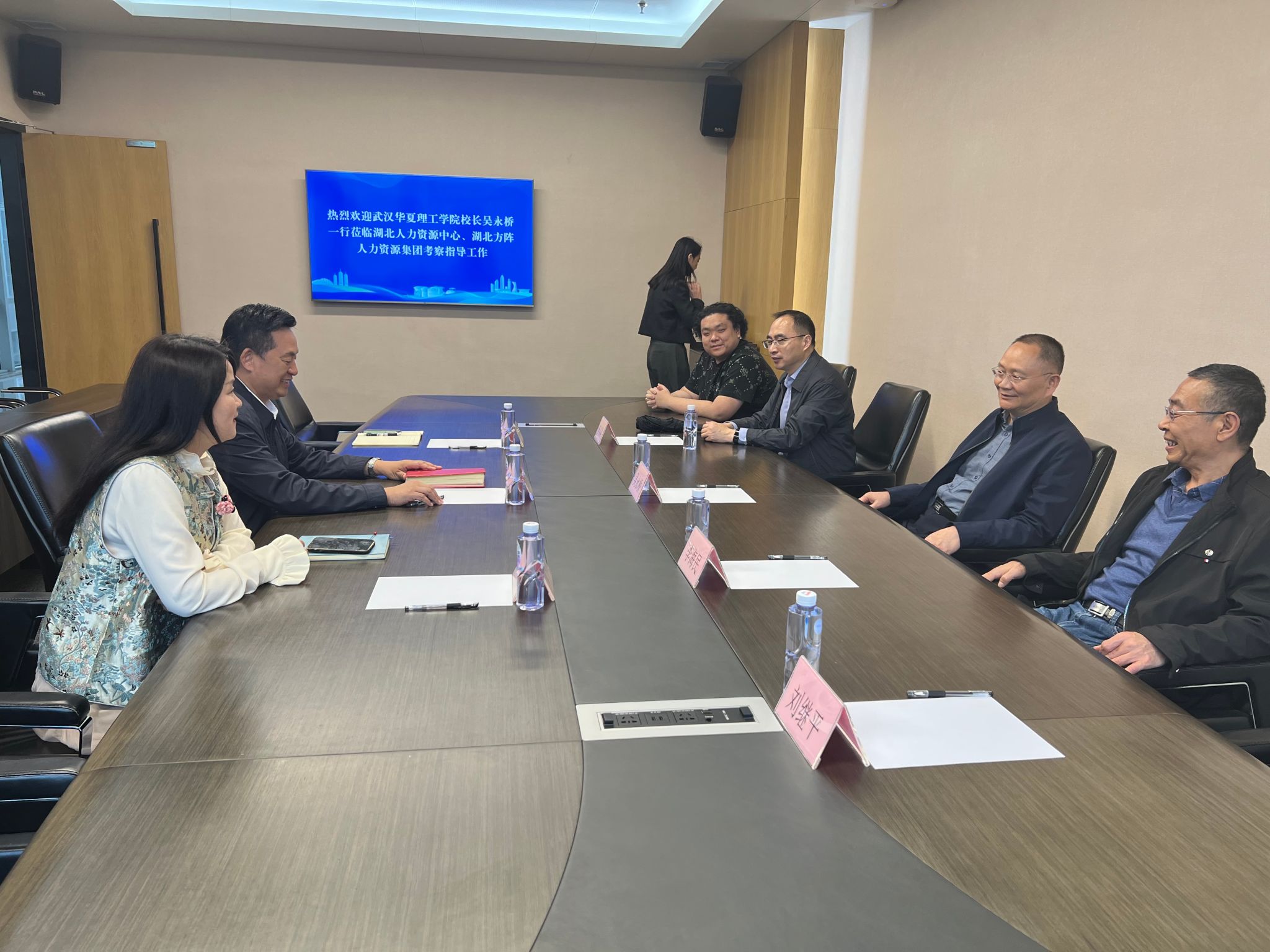 李士凌带领beat365一行先后参观了光谷人才港、方阵人力智慧招聘市场、湖北人力外呼支援基地、光谷政务人才服务中心、智慧档案服务中心等地。