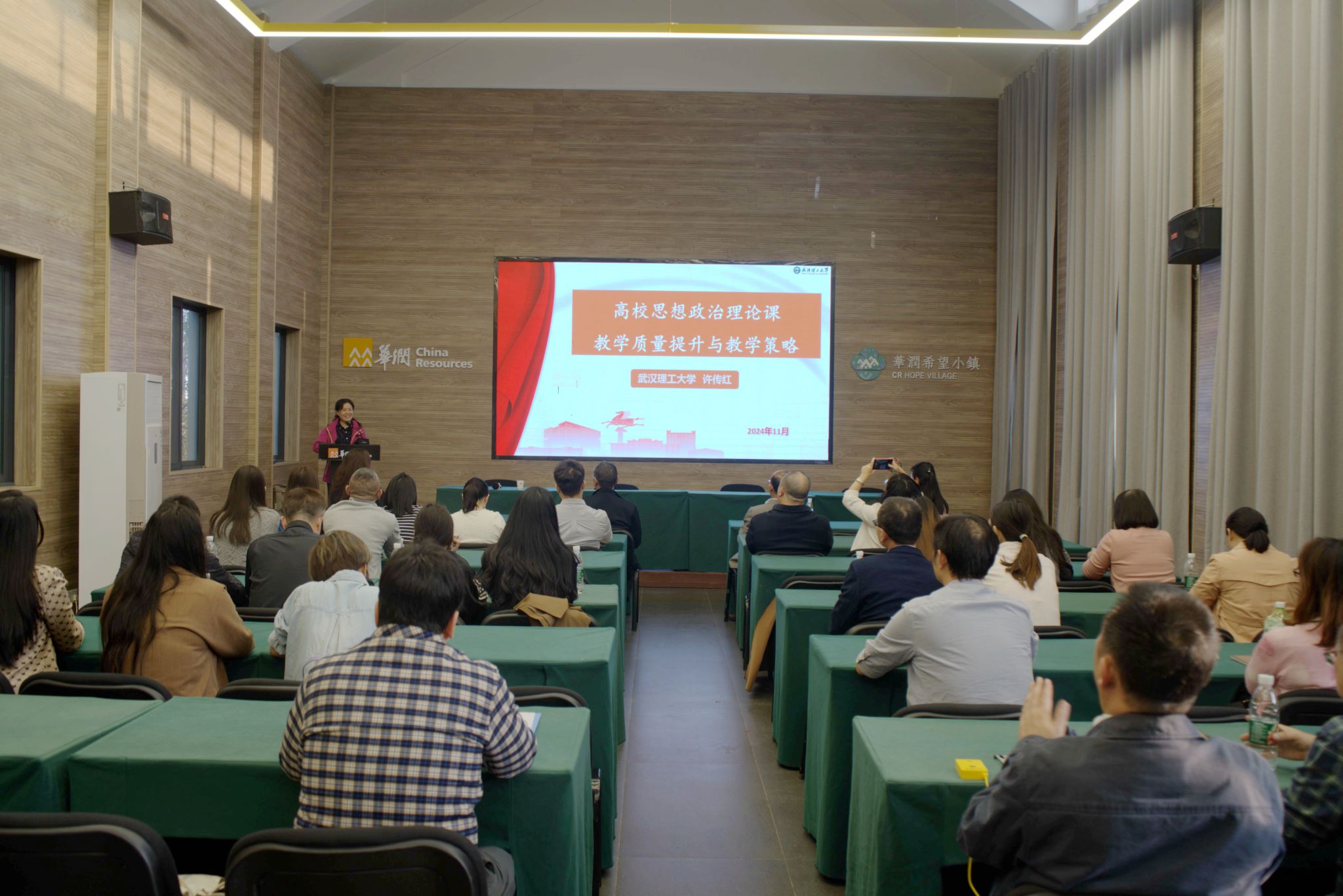 在专家讲授环节,来自武汉理工大学马克思学院的许传红教授、张煜教授和湖北商贸学院刘艳副教授三位校外专家分别作主题发言。许传红教授以“高校思想政治理论课教学质量提升与教学策略”为题,提出将多种教学方法与教学技巧融入课堂,使课程内容更加贴近学生实际,增强课程的吸引力和实效性;张煜教授围绕“问题导向型”教学法在《毛概》课程中的运用,指出问题链的挖掘与教学的密切联系;刘艳副教授则以“用活红色文化资源全面融入思政教学”为切入点,分享了该校马克思主义学院在本科教育教学合格评估工作中的做法和经验,特别强调在备课、磨课等环节需深耕细作,反复打磨精进课程。