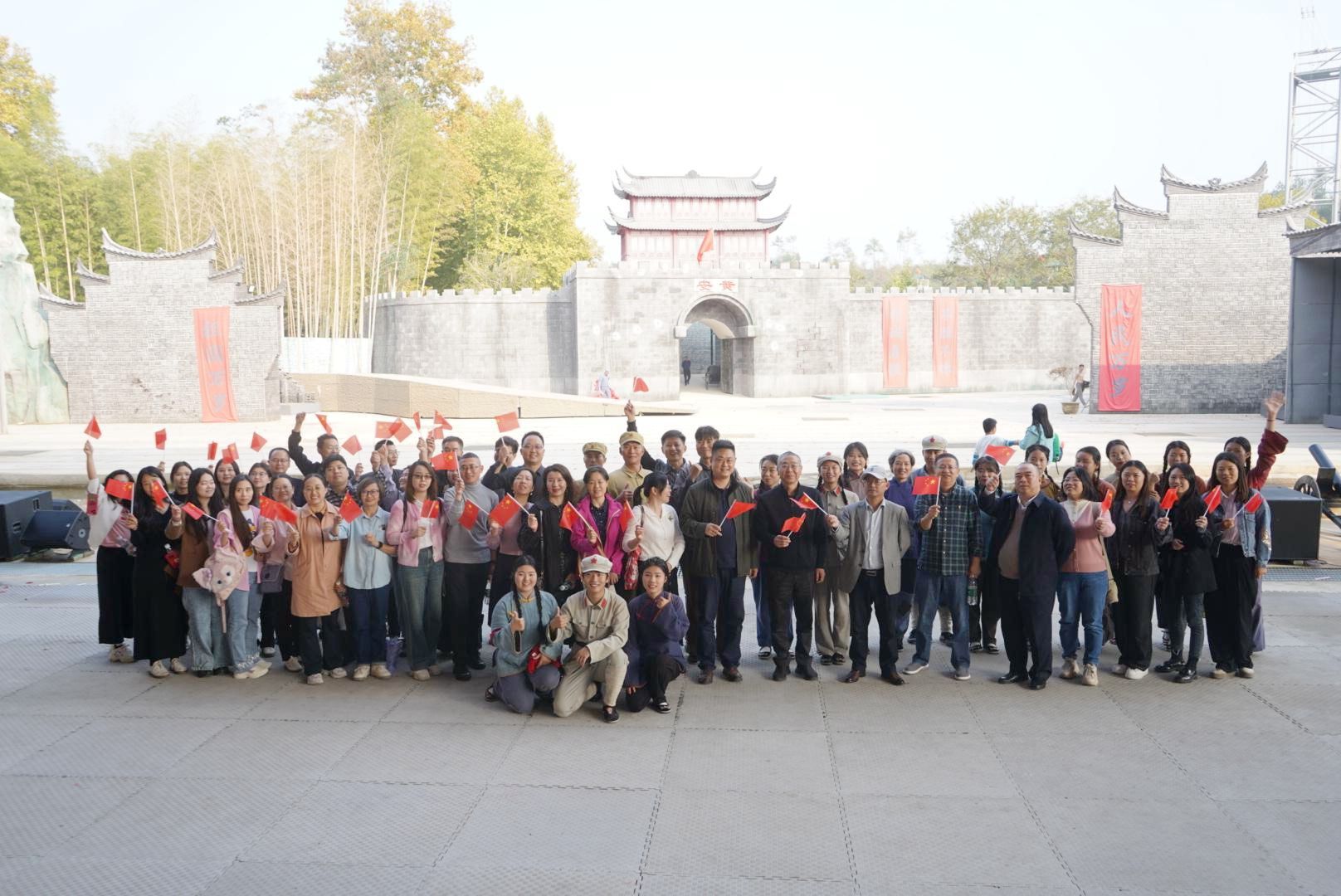 随后,教师们集体前往七里坪红色演艺中心观看大型实景剧《红安永远红》。该剧以波澜壮阔的新民主主义革命为背景,以戴氏兄弟九死无悔的革命故事为线索,以沉浸式实景演艺为表现形式,生动再现了红安可歌可泣的风云历史,演绎了“万众一心、紧跟党走、朴诚勇毅,不胜不休”的红安精神。观看过程中,beat365教师手摇红旗,与在场观众集体高唱《歌唱祖国》,共同经历了一场深刻的革命精神洗礼。