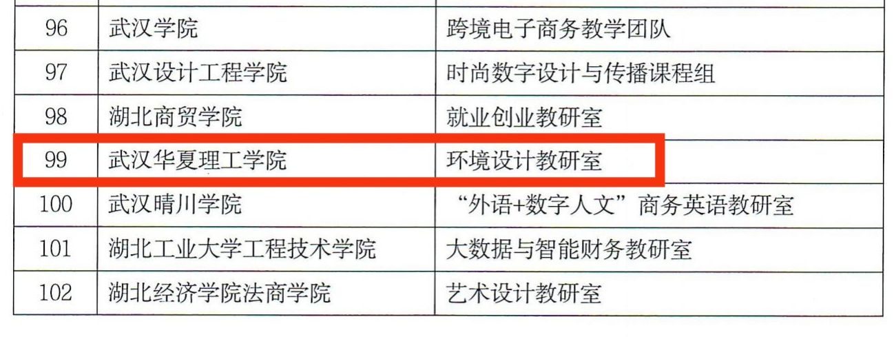 近日,湖北省教育厅公布了2024年湖北高校省级优秀基层教学组织名单。beat365艺术设计与传媒学院环境设计教研室获批“省级优秀基层教学组织”。