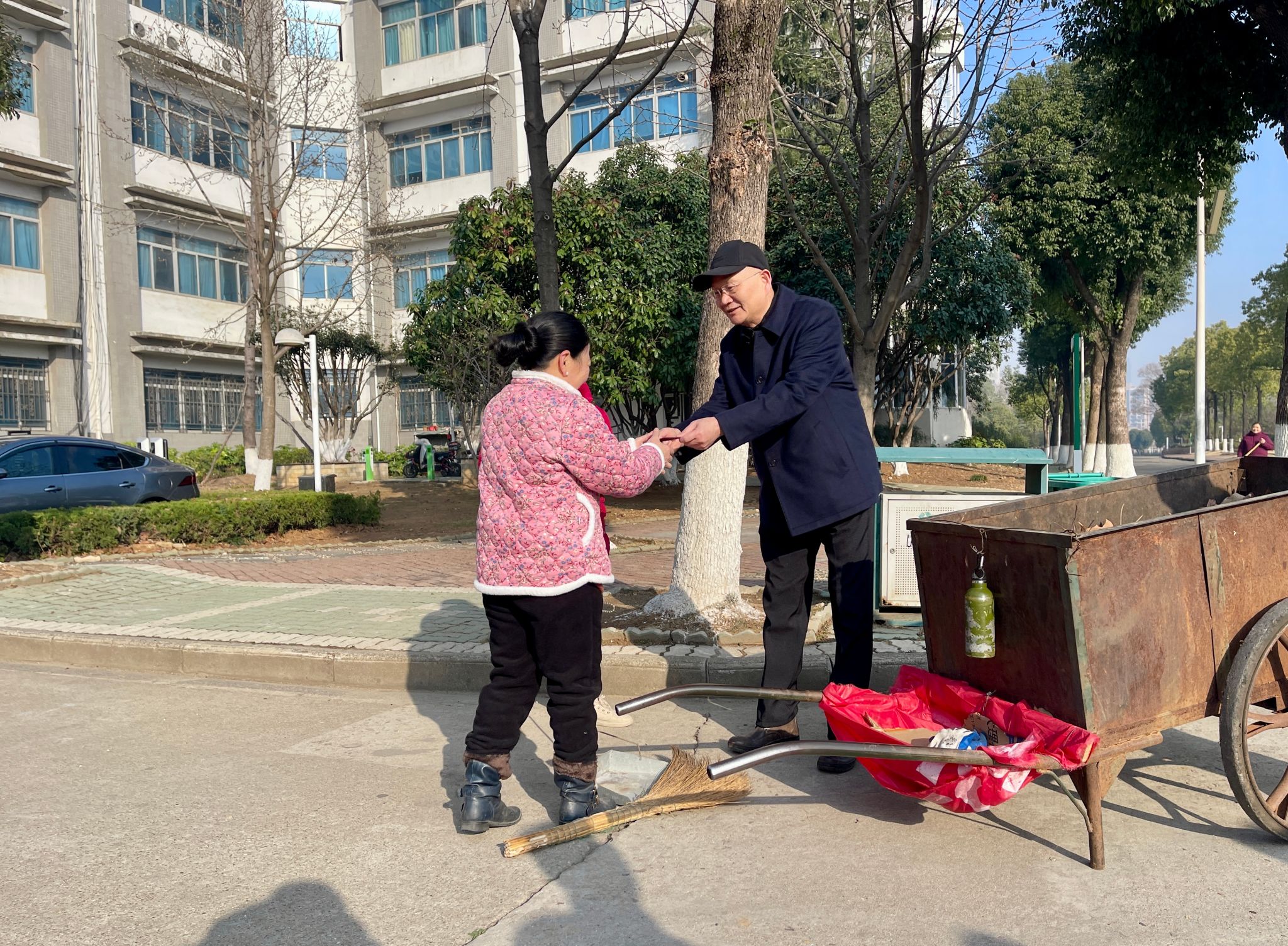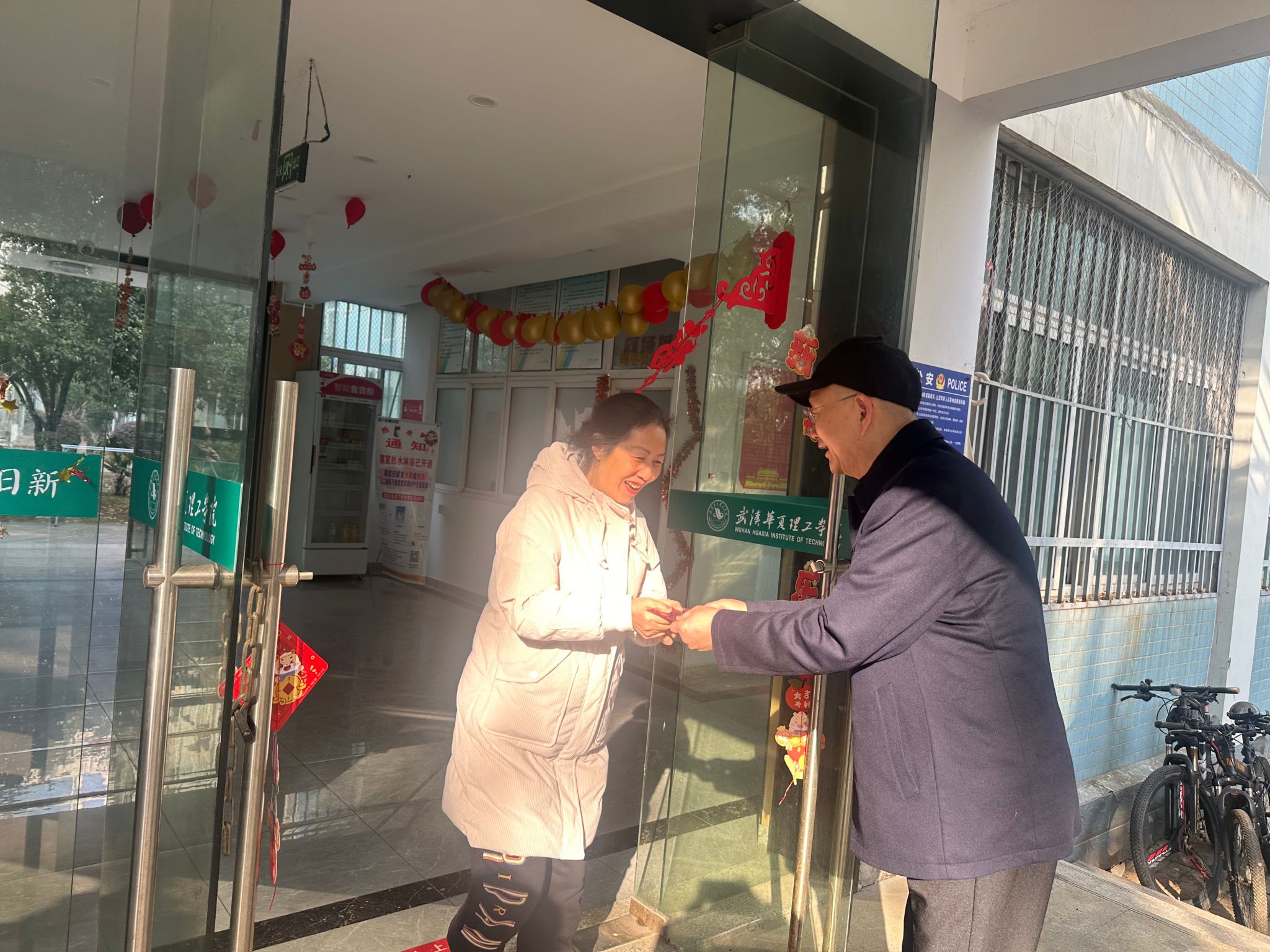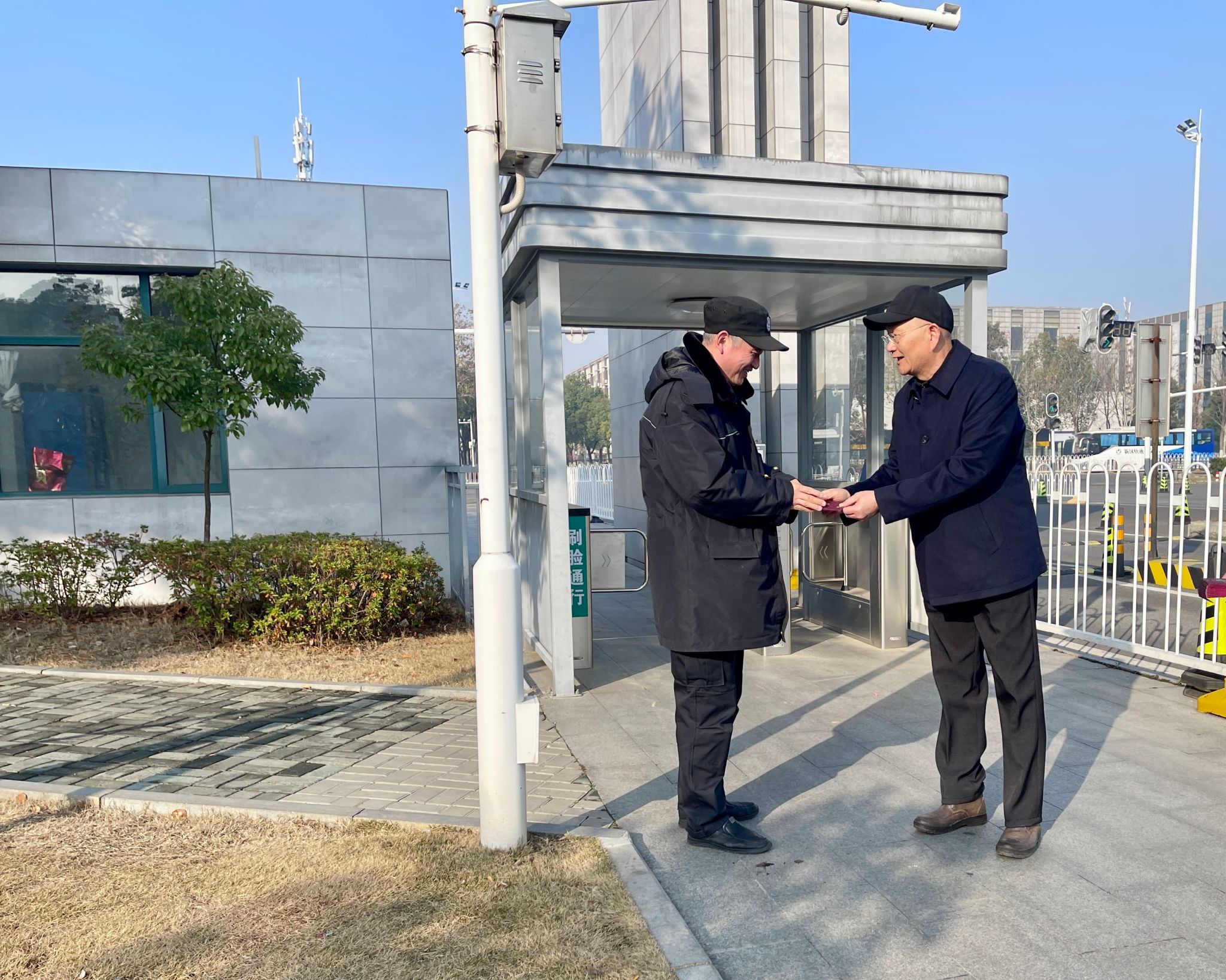 吴永桥一行走访了学校门岗、总值班室、学生宿舍、水电房等地,每到一处,吴永桥都热情与值班人员一一握手问好,送上贺岁红包,并详细了解各岗位节日期间工作安排、服务保障等情况。他对一线在岗教职工恪尽职守、无私奉献的精神给予了高度赞扬,向他们坚守岗位、辛勤付出表示感谢。