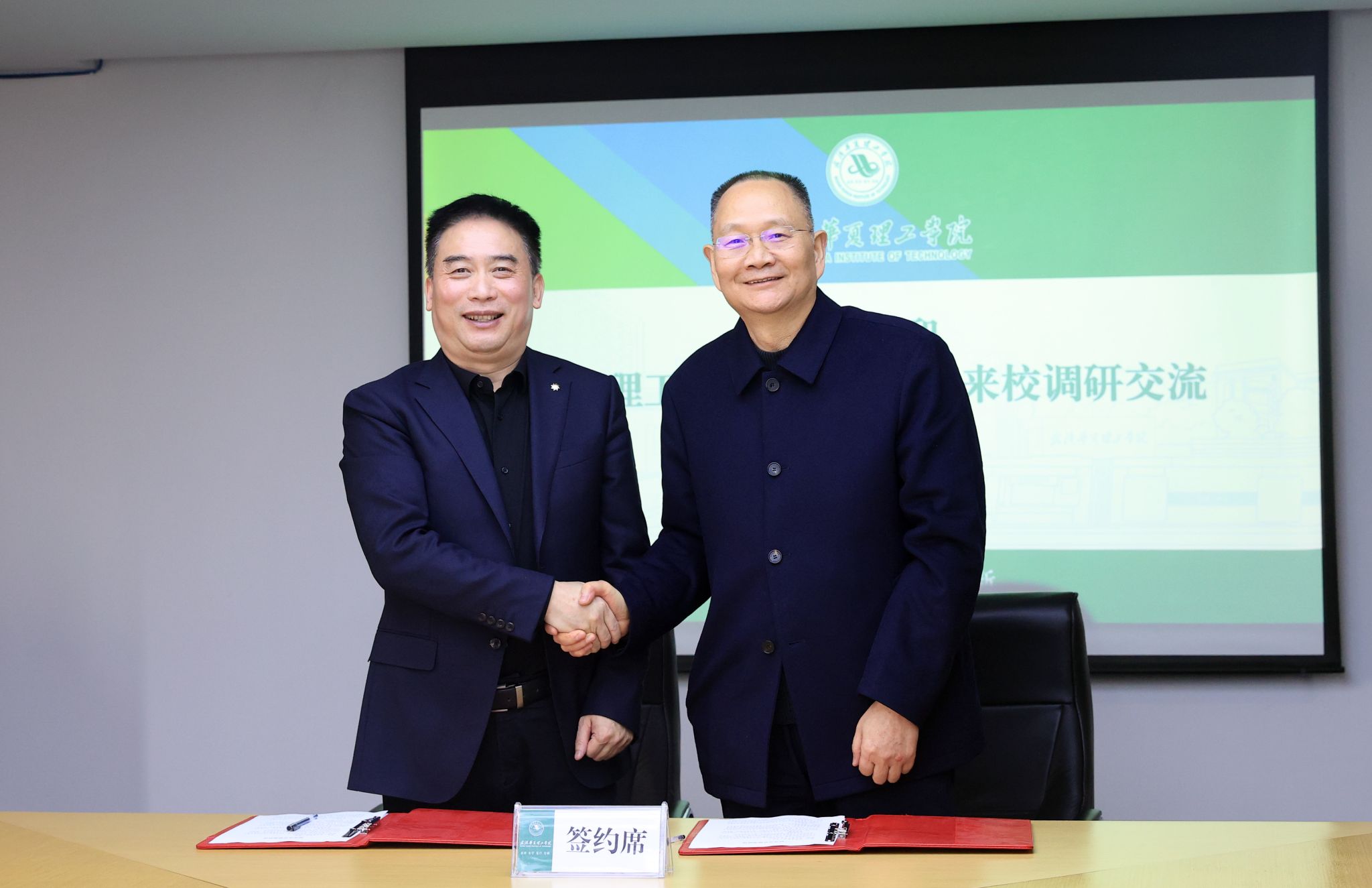 吴永桥与田禾代表校企双方签订校企合作协议。
