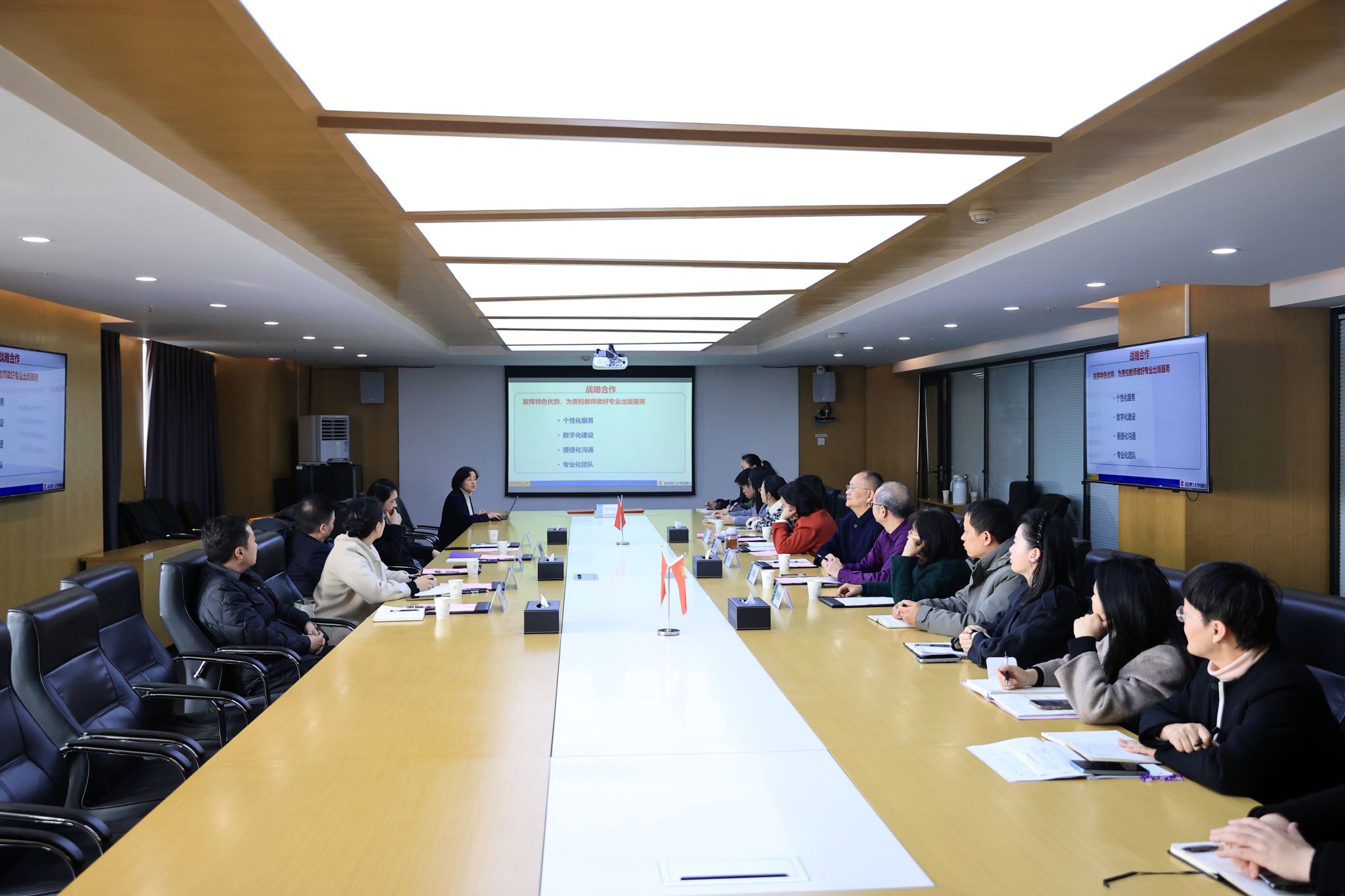 张青敏介绍了武汉理工大学出版社的基本情况,表示该社作为行业内的优质出版机构,多年来在教材开发、学术著作发行、学术研究等方面积累了丰富的经验和资源,拥有深厚的文化底蕴与专业的出版能力,将为双方合作奠定坚实基础。