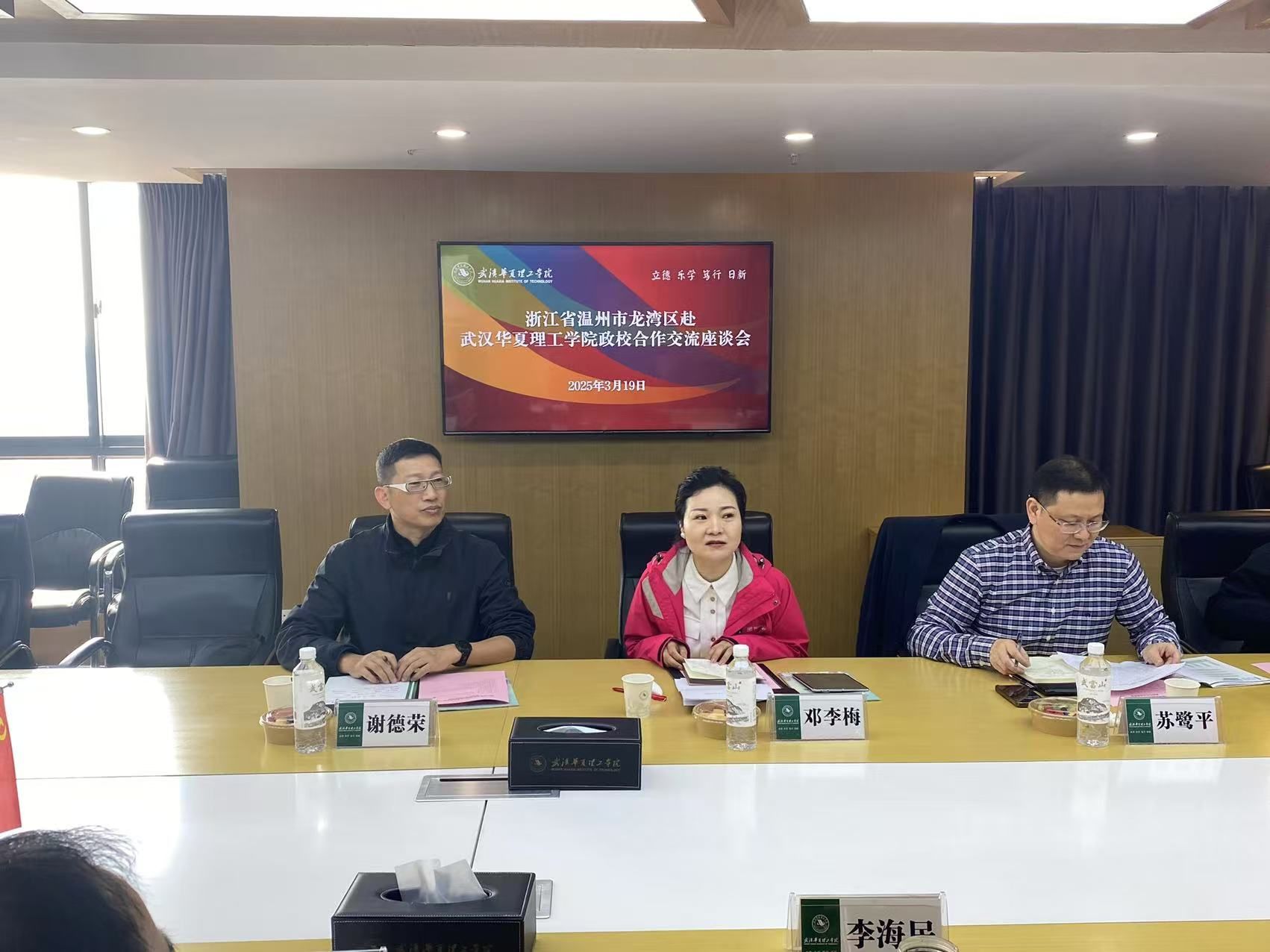 为深化产教融合,促进政校企协同发展,3月19日,学校在综合楼1402会议室组织召开了以“携手共进,合作共赢”为主题的浙江省温州市政校座谈会。中共温州市龙湾区委组织部副部长、龙湾区人力资源和社会保障局党组书记、局长邓李梅,相关政府部门领导,学校党委副书记、副校长李海民,各学院党总支副书记及学生就业创业服务指导中心全体成员参加。会议由学生就业创业指导服务中心副主任刘继平主持。