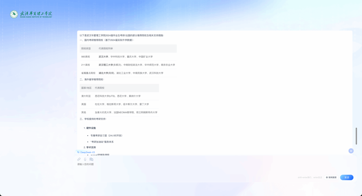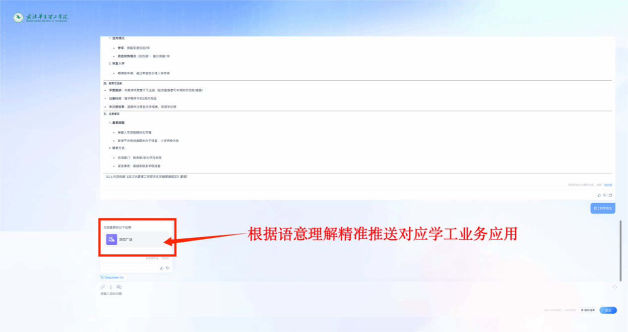 学生工作是高校工作的重要组成部分,AI数字能力中心为学工各类业务服务带来了全面升级。通过与学工系统数据全面打通,中心实现了学生信息的实时共享和精准管理。在迎新工作中,AI系统能够提前为学生提供入学指南、宿舍安排等信息,让学生感受到贴心的关怀;在请假、奖助学金等业务办理中,学生可以通过智能终端随时随地提交申请,系统自动审核并反馈结果,大大提高了办事效率;在学生手册的智能解读方面,学生可以随时查询相关政策和规定,获取准确的解答。此外,学工老师通讯录的便捷查询功能,也让老师之间的沟通更加顺畅。这些贴心的服务,让学生感受到学校的关怀与温暖,助力学生健康成长。
