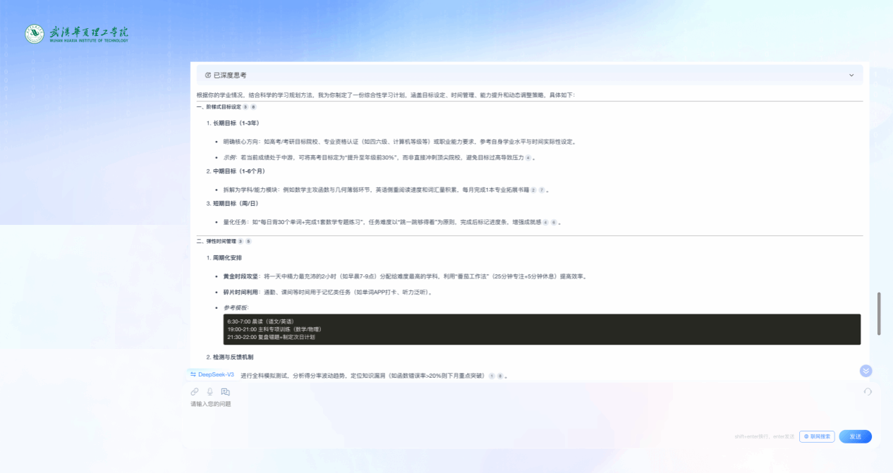 AI数字能力中心运用多种先进模型,构建起坚实的技术底座。超大型语言模型具备处理复杂任务与深度分析的卓越能力,可助力学校在战略规划、科研攻关等高难度任务中精准决策;高效型模型在保证精度的同时,优化了处理速度,能满足日常教学和管理中高频使用场景的需求;多模态模型支持文本、图像等多种输入形式,为教学、科研等提供了丰富多元的交互方式。这些模型相互协作,全面覆盖从教学到管理的各类应用场景,为师生提供全方位、智能化的支持,让智能技术深度融入学校的每一个角落。
