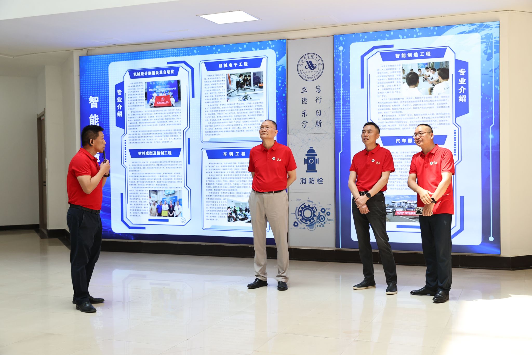 校庆活动在体育馆一楼文体中心开启。体育学院院长刘涛带领师生参观全民健身中心,并介绍了特别打造的体育文化长廊,生动地展示了体育学院在体育赛事、体教融合等方面取得的突破性成果。