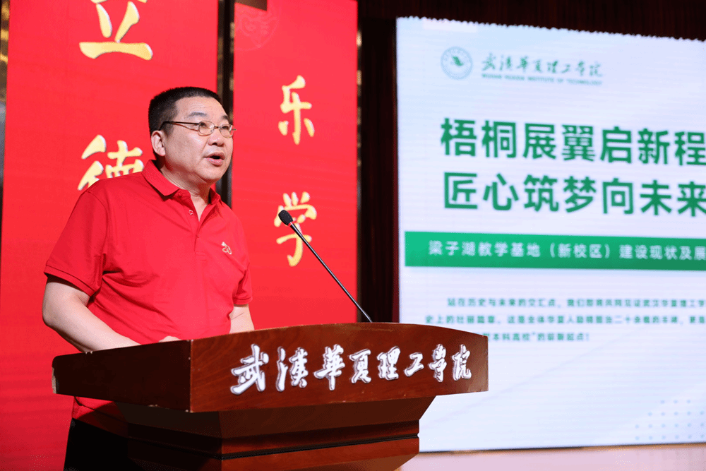 下午四点,“梧桐展翼启新程 匠心筑梦向未来”梁子湖教学基地校园建设报告会在综合楼学术报告厅举行。党委书记丁德智主持会议。副校长胡水兵简要回顾了学校21年来发展历程,重点介绍了梁子湖教学基地筹建过程和建设现状。他表示,新校区将为师生提供更优质的教学条件和生活设施,创造更好的学习和生活环境。学校将持续打造具有世界眼光、华夏特色、最美风景、高标定位的现代化校园,为创建特色鲜明的高水平应用型大学奠定坚实基础。