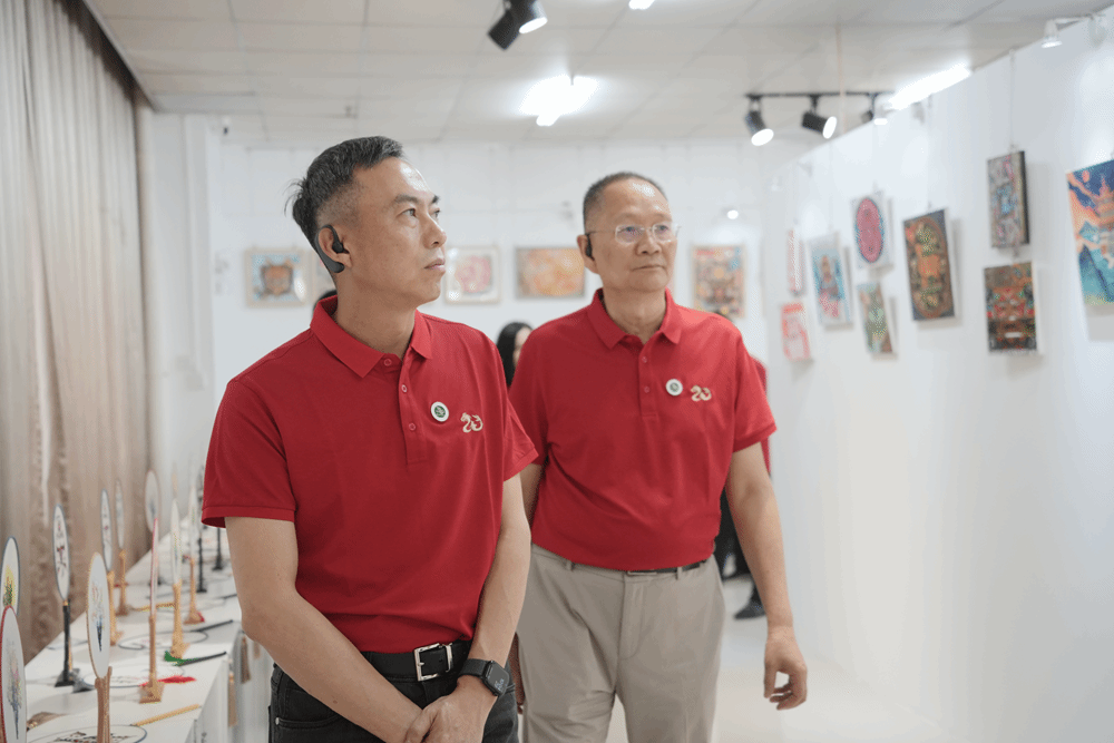 艺术馆三楼美育展火热展出,艺术学院副院长邓婧为参观者深入解读参展作品的创作理念与技术融合特色。美育中心秉持“育美、育心、育人”宗旨,将美育理念融入教学实践,打造艺术创作、展示、交流平台,在学科建设与人才培养方面成果丰硕,充分彰显了“以美育人、以文化人”的办学特色。