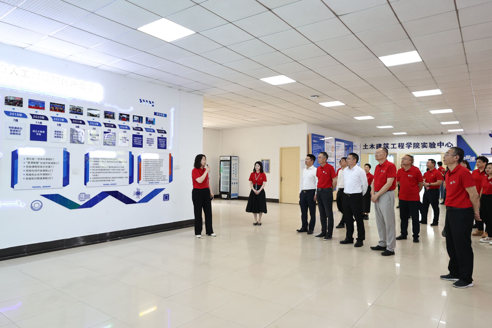 产业长廊展中,信息工程学院学生自主研发的智能机器人方阵带来科技舞蹈秀,展现“新工科”建设成果。学院新建设成鸿蒙、昇腾等四大中心,引入华为资源协同育人,将有效培养学生的实践能力和综合素养。