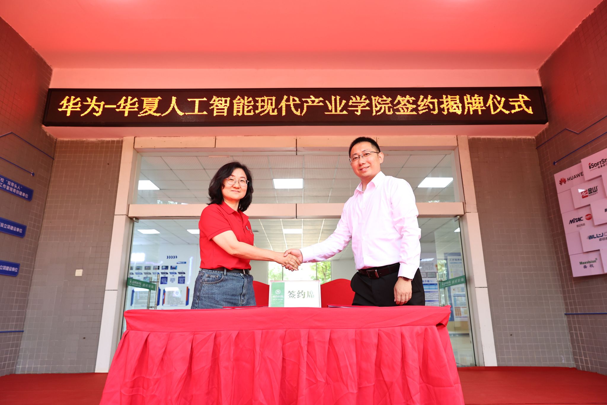 华为-华夏人工智能现代产业学院揭牌仪式将庆典推向高潮。副校长李猜与企业负责人签署合作协议,校领导与企业代表共同揭牌。在热烈的掌声中,湖北省首个华为现代产业学院正式落户beat365。企业方将与beat365深入产教合作,开启校企协同育人的新篇章。