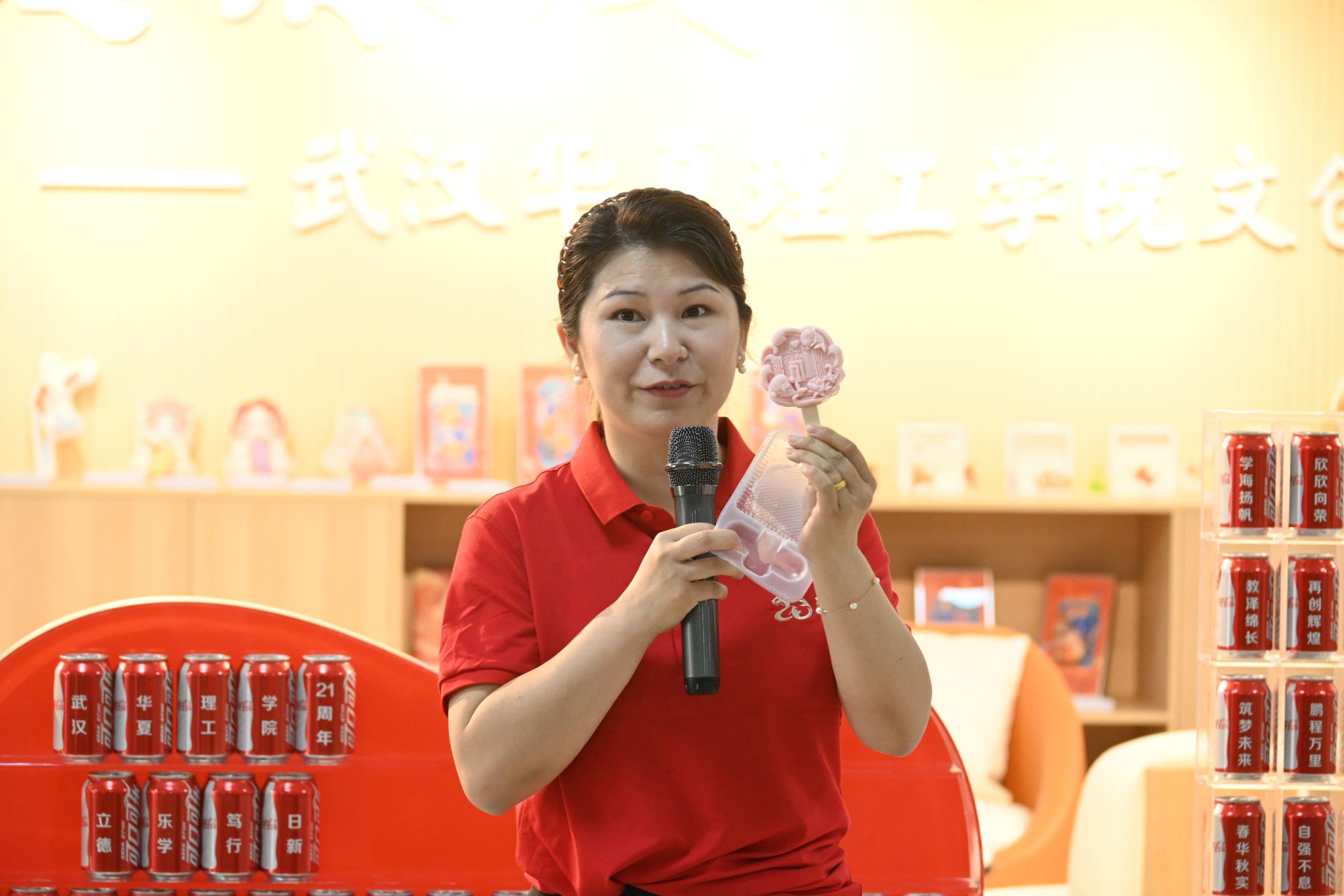 校徽及文创产品发布会将活动推向高潮。全新的校徽由校标、校名、校训、英文翻译组成,同心圆象征全体华夏人团结一心。发布会亮点产品“冰雪小华夏”文创雪糕匠心独运:造型设计外圆内方,暗合天圆地方的传统文化理念,并巧妙融入校门轮廓与吉祥物“华仔”“夏宝”形象。雪糕棒镌刻校训,既是对学子的谆谆教诲,又寄喻“鱼跃龙门”的成长祝愿。设计团队负责人表示,“希望学子们在品味甜蜜时,更能感悟校训承载的精神内核。”