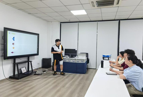 会议开场,余家涛明确例会旨在检验教学内容与授课方法。随后,他以“海底世界”为主题开展Scratch编程试讲。通过海底生物视频导入后,余家涛将编程操作分为搭建背景、添加角色、编写代码三部分。他详细演示从素材库选图调整背景,指导导入海星等角色并修改外观,还结合物体运动原理类比解释编程指令。教学中采用边讲边练模式,及时纠错,助力“模拟学生”完成编程作品。