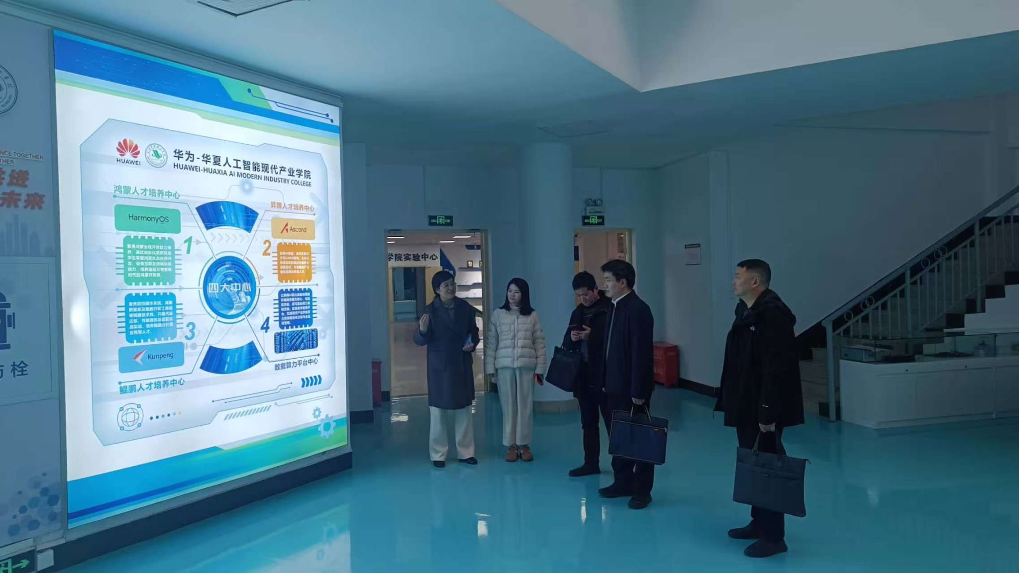 最后,张城芳部长、艺术学院副院长邓婧、信息学院副院长王绪梅分别带领沙洋县领导一行参观了学校产学研名师工作室、艺术展馆、华为-华夏人工智能现代产业学院,得到了沙洋县领导们的一致好评。
