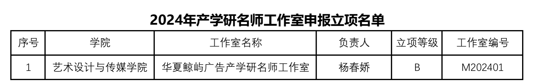 根据《beat365官方网站产学研名师工作室建设管理办法》(武华校产〔2024〕1号)文件要求,经工作室申报、学院审核推荐、产教融合办公室组织答辩及专家评审,评议出2024年拟立项产学研名师工作室一项,现对名单予以公示。公示时间为2024年5月7日至9日。公示期内,如有异议,请与产教融合办公室联系。