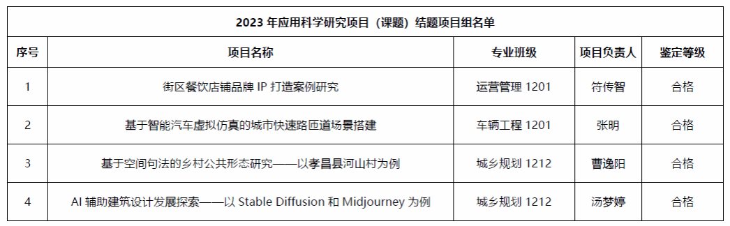 根据《应用科学研究项目管理办法》的相关要求,产教融合办公室、华夏建规工作室组织开展了2023年应用科学研究项目结题评审,现将结果进行公示(见下表)。