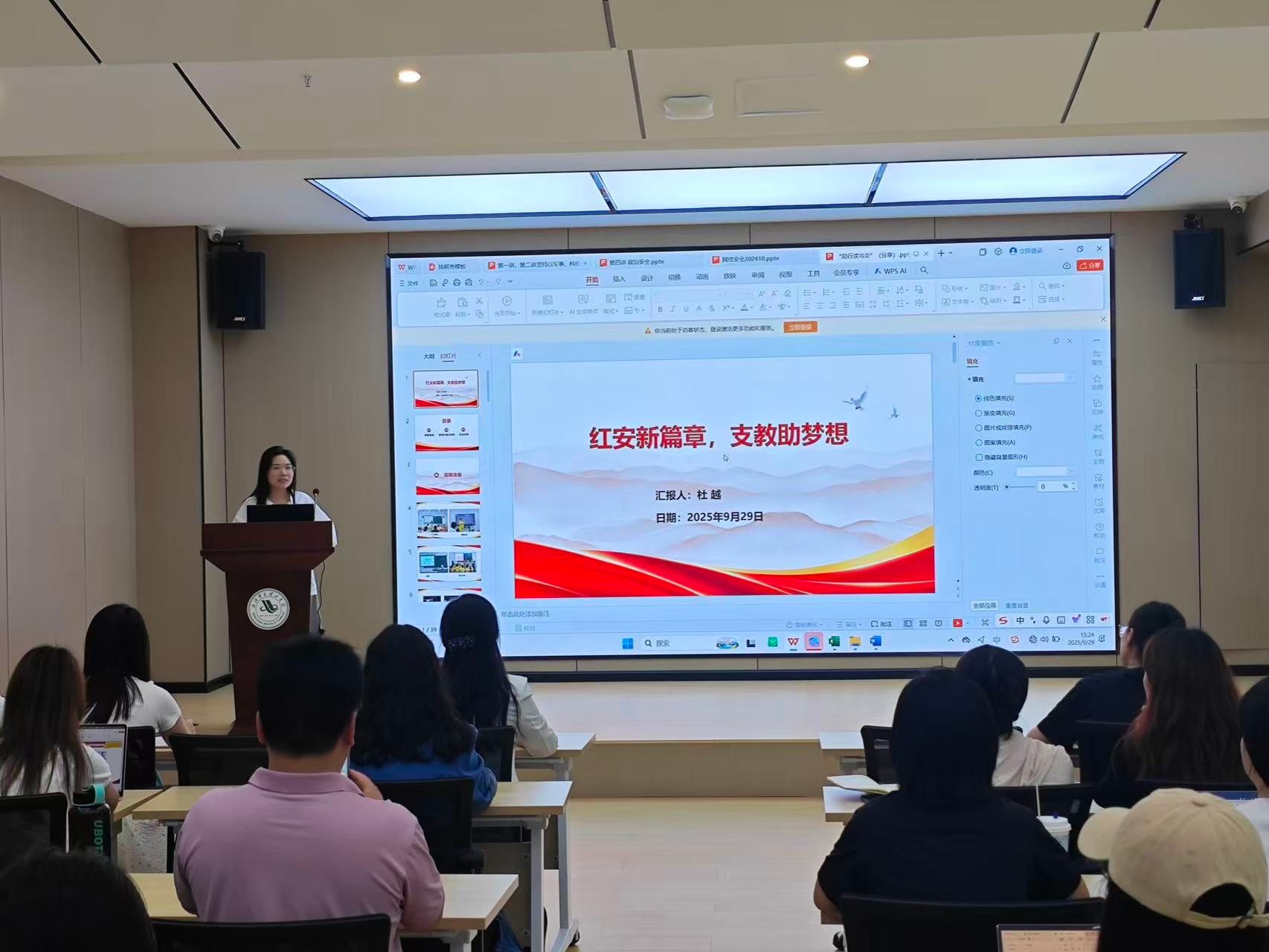 2025年9月29日下午,在图书馆一楼多功能报告厅举行了“励行读书会”红安实践心得分享会。此次分享会由杜越老师主讲,她全面回顾了“励行读书会”实践队在红安开展的一系列活动,展现了一场集教育、奉献与成长于一体的实践之旅。