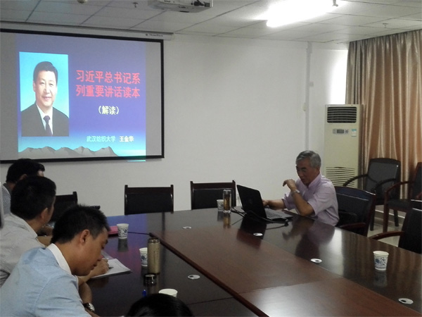 2015年7月14日全体两课部教职工在行政楼四楼会议室分上午下午两个部分学习了习近平总书记系列重要讲话读本。王金华教授为大家做了讲座。