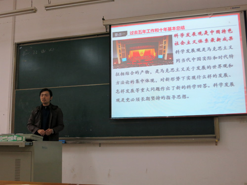 两课部胡贵章主任强调,党的第十八大是一次重要的大会,是今年我们党和国家的大事,作为高校老师尤其是思政课的老师,必须积极主动学习党的十八大精神,关注党的十八大的内容,在思想上和党中央高度保持一致。他指出,要把党的第十八大的精神贯彻到今后的教学和科研当中,并布置了接下来一段时间的学习安排:根据胡锦涛总书记的报告内容,思政教研室的每位老师重点研究其中的一个部分,然后在教研室当中开展集体学习活动,深刻贯彻领会党的十八大报告的精神。体育教研室的老师也要开展思想政治学习,确保及时正确的领会党的十八大精神。