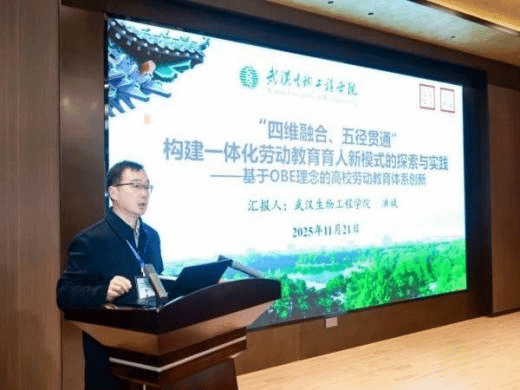 武汉生物工程学院劳动教育管理办公室主任洪斌出席并发表致辞,立足OBE理念系统阐述“四维融合、五径贯通”劳动教育育人模式,通过多维度协同联动、多路径贯通衔接,整合校内外优质资源搭建特色实践平台,优化育人全流程设计,着力提升学生劳动素养与实践能力,探索贴合院校特色的劳育落地实效路径。
