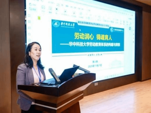 武汉外语外事职业学院通识教育学院院长付小云出席并发表致辞,以“新时代新劳育”为核心,分享高职院校“微实践、大素养”劳育改革实践,依托轻量化、常态化微实践场景,将劳育融入日常教学,以小实践涵养大素养,助力学生养成劳动习惯、提升综合素养。