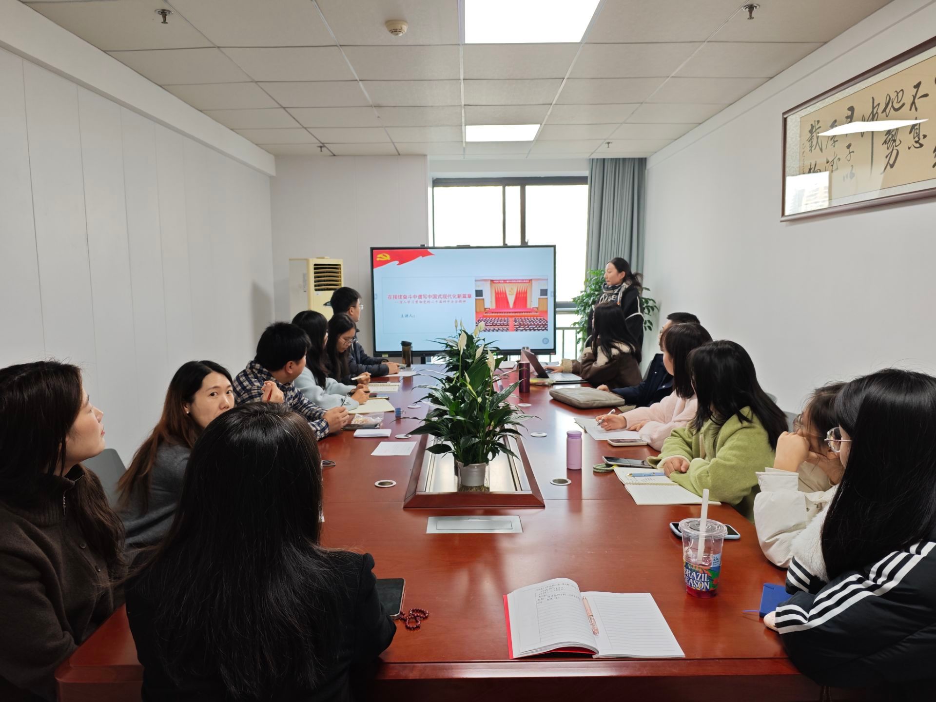 为深入学习贯彻党的二十届四中全会精神,切实把思政课教师的思想和育人行动统一起来,2025年12月8日,马克思主义学院教工第二党支部组织开展“在接续奋斗中谱写中国式现代化新篇章”主题学习活动。活动由教工第二党支部书记吴振琦主持,支部全体党员参加了学习活动。