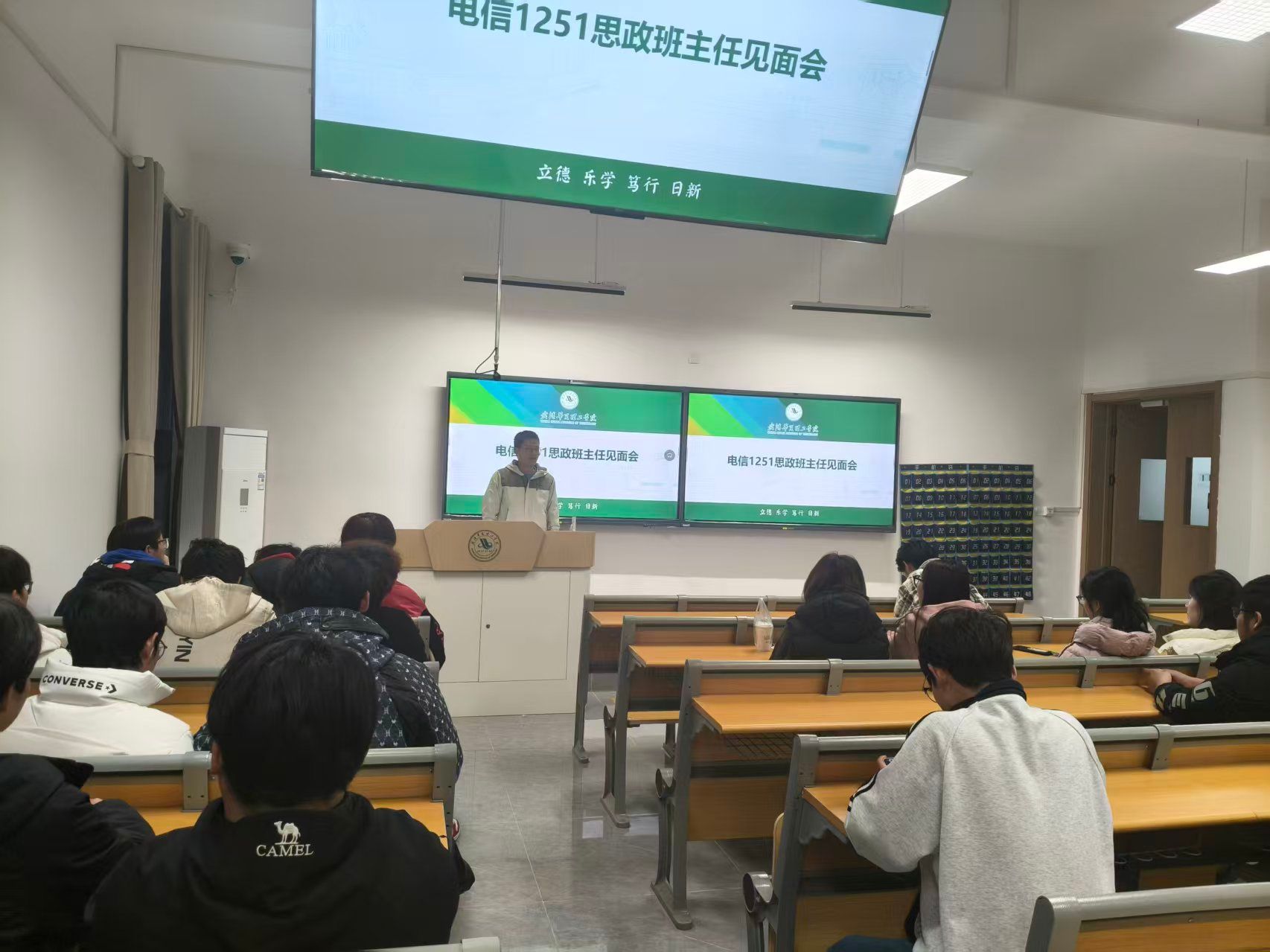为引导学生更好适应大学生活,加强对学校学院的了解,明确学习目标,12月9日,电信1251班思政班主任见面会在梧桐湖校区教学楼B310顺利召开。会议由何易老师主持。