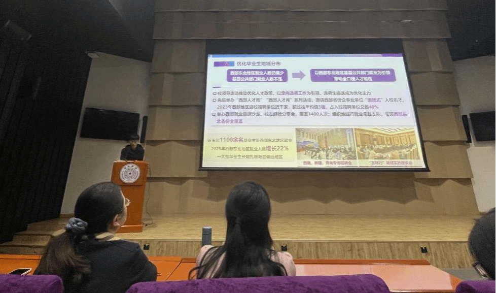 报告会上,杨广进老师首先清晰梳理了清华就业引导工作的历史脉络。其次,详细介绍了清华大学构建的“全覆盖、分层次”职业发展指导体系。最后,分享了清华大学就业引导工作取得成效。报告中展示了清华毕业生扎根基层、服务国家战略的典型案例,以及就业重点率从30%提升至80%以上等亮眼成果,让在场教师深受触动。