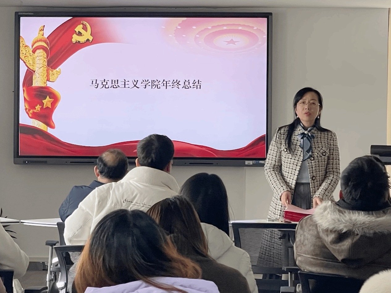 2025年12月29日下午14时许,马克思主义学院在综合楼1401会议室召开年终总结大会,马克思主义学院院长张丽主持会议,全院教师参会。