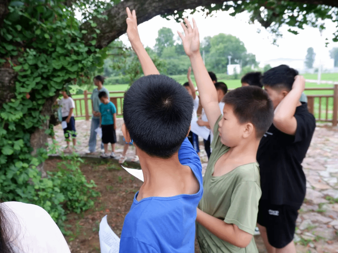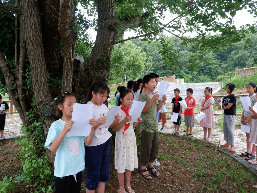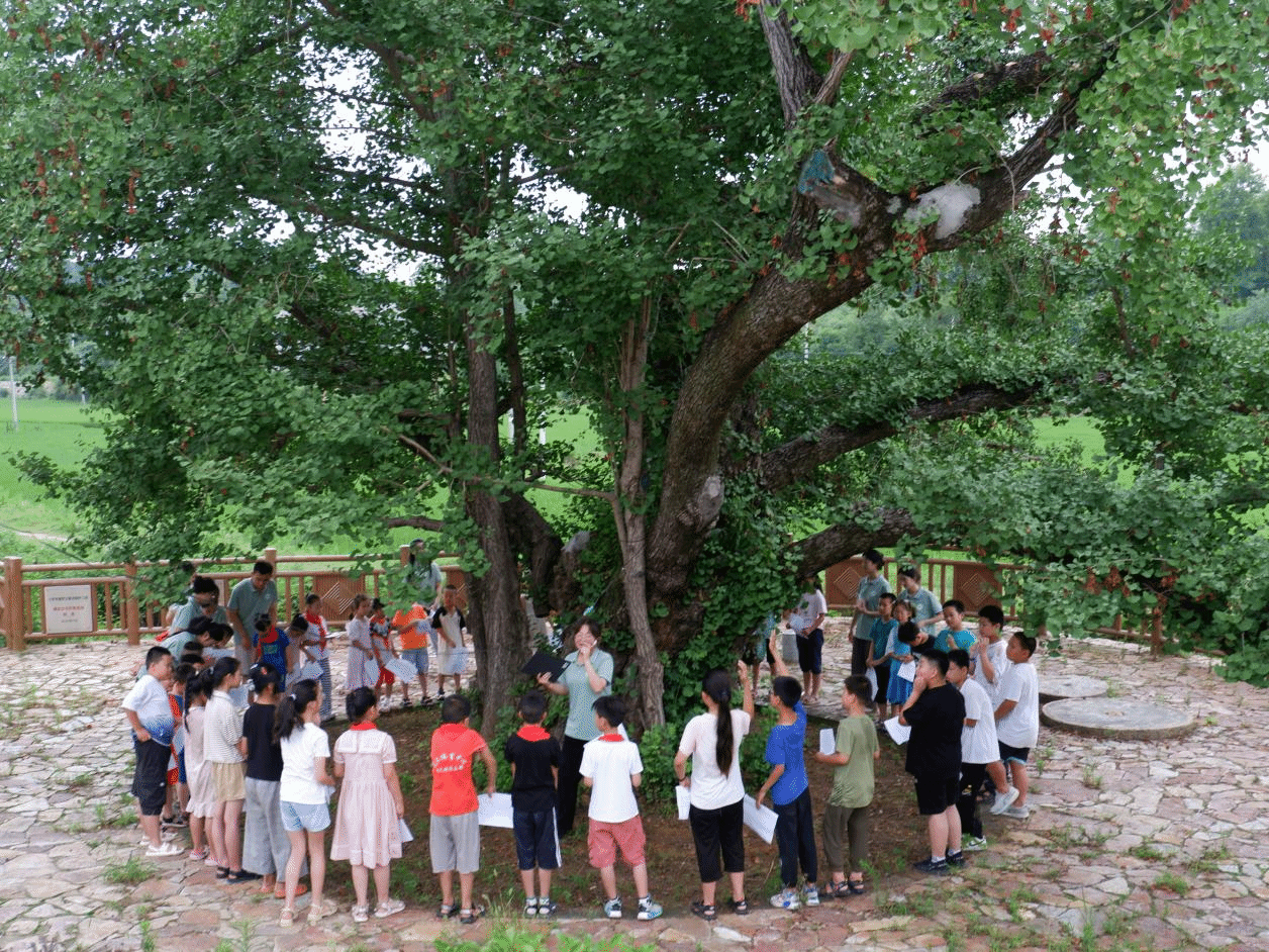 支教队的老师们带领着一群天真烂漫的孩子来到了银杏古树下,围成一个温馨的圆圈,开始了今天的晨读——《少年中国说》。他们一字一句地跟随老师大声朗诵,“少年智则国智,少年强则国强……”,孩子们的眼中闪烁着对未来的渴望和对知识的追求。孩子们的声音清澈悦耳,透露出一种坚定和自豪,磅礴的韵律在千年古树下回荡,仿佛穿越了时空,与那些伟大的先贤对话。