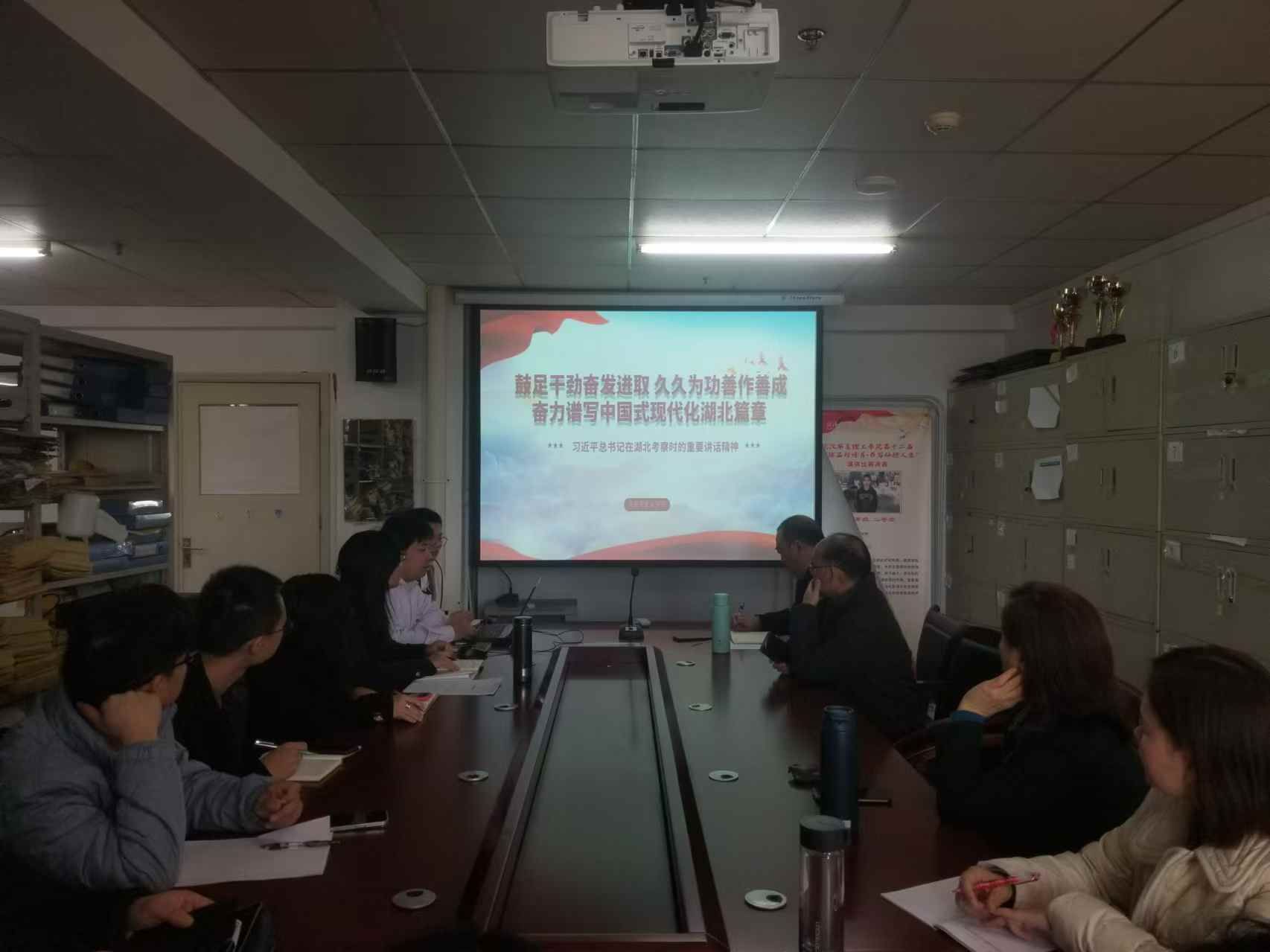 2024年11月28日上午,马克思主义学院在综合楼412会议室召开支部党员会议,学习习近平总书记在湖北考察时的重要讲话精神及党的精神谱系。