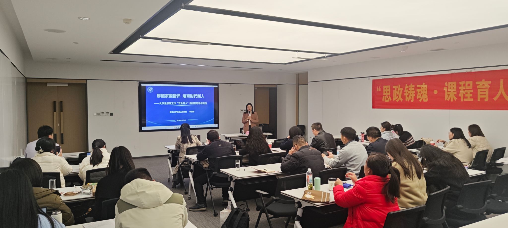 浙江大学机械工程学院党委书记项淑芳以“当代大学生思想政治工作的难点及应对策略”为主题,从育人工作基础、育人基本思路和育人具体举措三方面,介绍了浙江大学机械学院全员育人共同体、全过程育人动态链和全方位育人生态圈的工作开展情况。同时结合鲜活案例,从王淦昌、程开甲、等“两弹一星”功勋事迹出发,以林俊德感人事迹为原点,着力讲述扎根戈壁大漠为国铸核盾的浙大马兰人物故事,提出要践行“马兰精神”,这些生动事迹,为将“两弹一星”精神融入思政课提供了宝贵的启示。