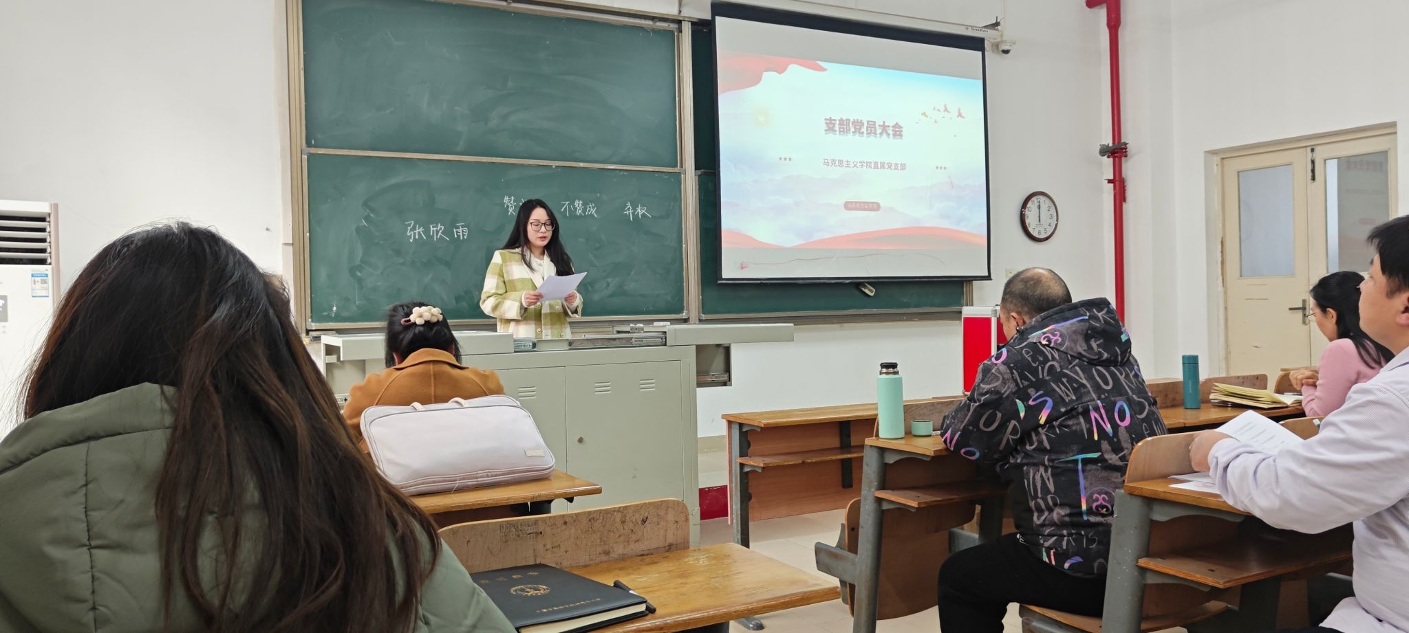 根据党章和中国共产党发展党员工作细则的有关规定, 马克思主义学院直属党支部于近日召开全体党员大会,讨论预备党员张欣雨同志转正事宜。