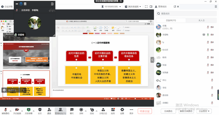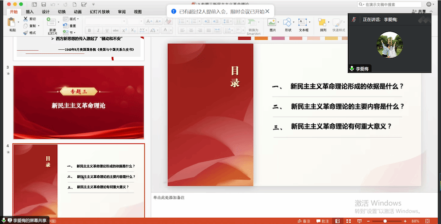 9月8日19:30,《毛泽东思想和中国特色社会主义理论体系概论》教学团队第一次集体备课会以线上形式召开,此次集体备课会主要是完成了教材中第二章和第三章内容的备课,分别由李爱梅老师和杜伦芳老师分享了自己授课的设计思路,创新的授课形式与内容,等等。李爱梅老师分享的第二章教学资源,理论联系实际,杜伦芳老师讲到要学会抓住培养学生的自主思考能力。