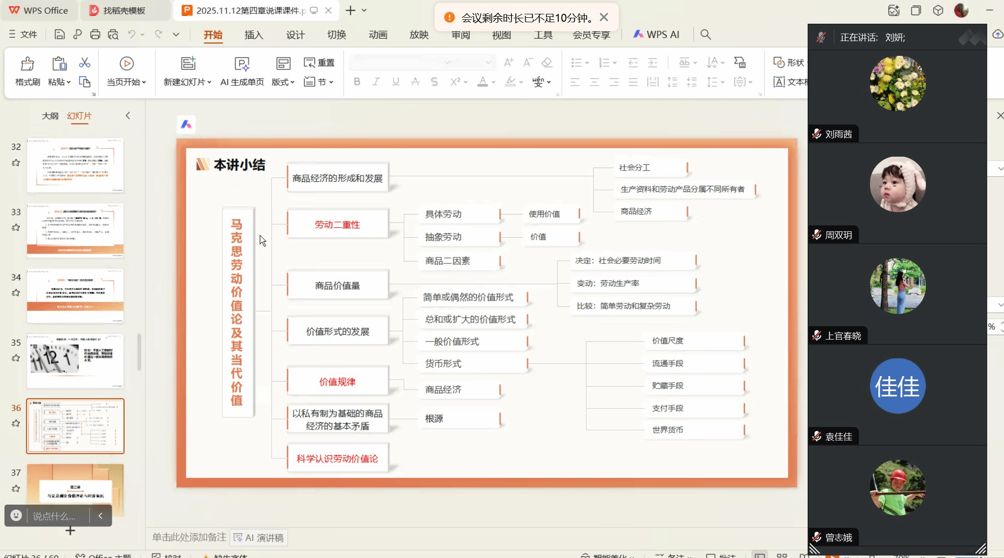 赵萌老师在进行会议总结时强调,政治经济学部分是师生均需共同努力攻克的难点。她指出,讲授此部分内容必须讲清、讲透基本概念,如商品二因素、劳动二重性以及资本总公式及其矛盾等。她建议,在关键知识点讲解后应结合具体题目进行训练,以检验学生的理解程度;对于资本总公式等教学难点,可借助“马克思漫漫”等优质多媒体资源辅助讲解,化抽象为具体。最后,赵萌老师强调要紧扣教育部课件,围绕资本总公式矛盾、劳动力商品、剩余价值生产等六个层层递进的要点展开,以确保为学生打下扎实的理论基础。