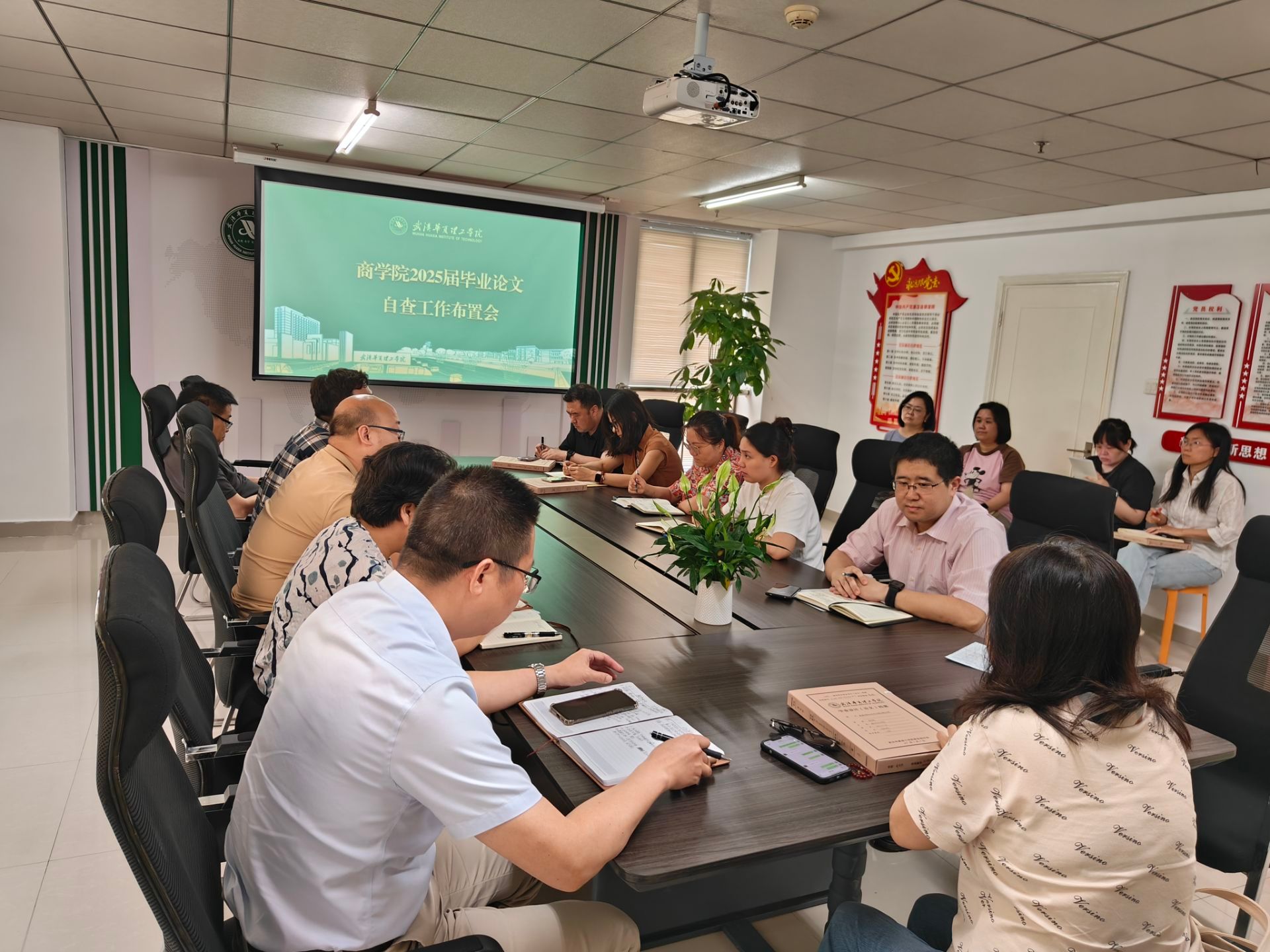 为切实提升本科毕业论文质量,为本科教学评估工作夯实基础,根据学校有关工作要求,商学院于6月13日组织召开2025届毕业论文自查工作布置会。学院领导班子成员与各专业负责人参加本次会议,共同研讨部署毕业论文自查工作,力求以严谨态度、严格标准,推动学院论文质量提升再上新台阶。