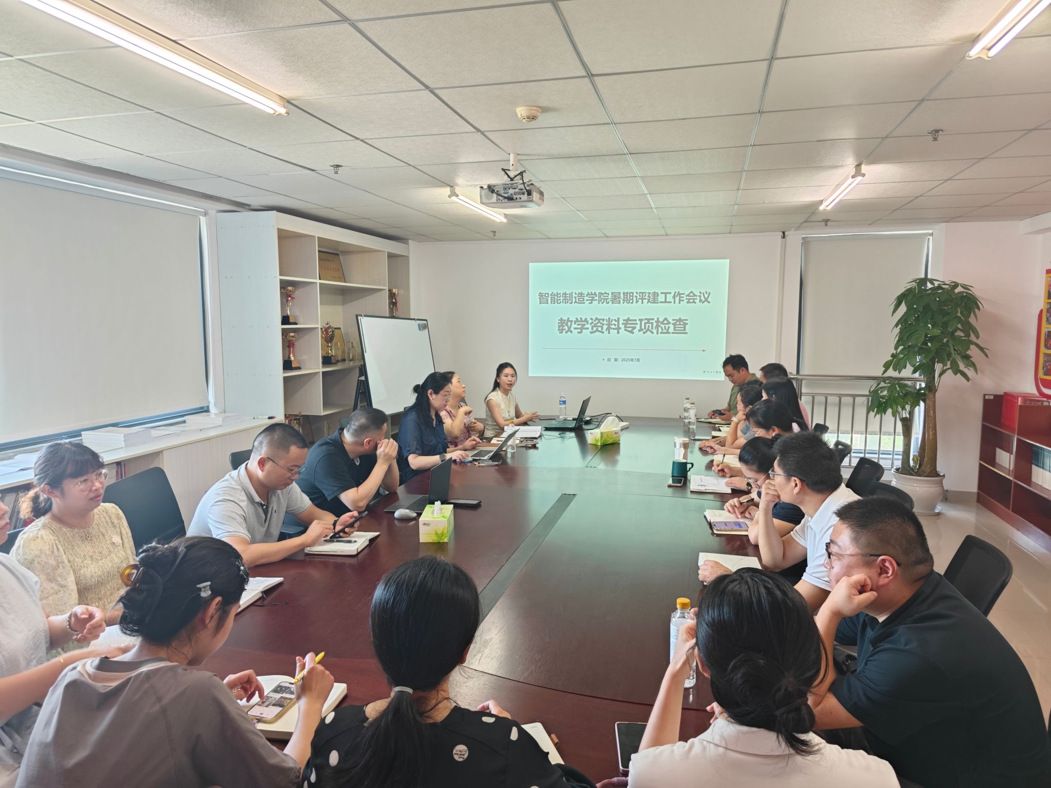 为高效推进暑期评建工作,7月1日上午10点,智能制造学院于919会议室召开专题会议。本次会议由教学副院长汪芳主持,执行院长齐洪方、副院长李媛,各系部中心主任、部分骨干教师及教学办老师共同参会。