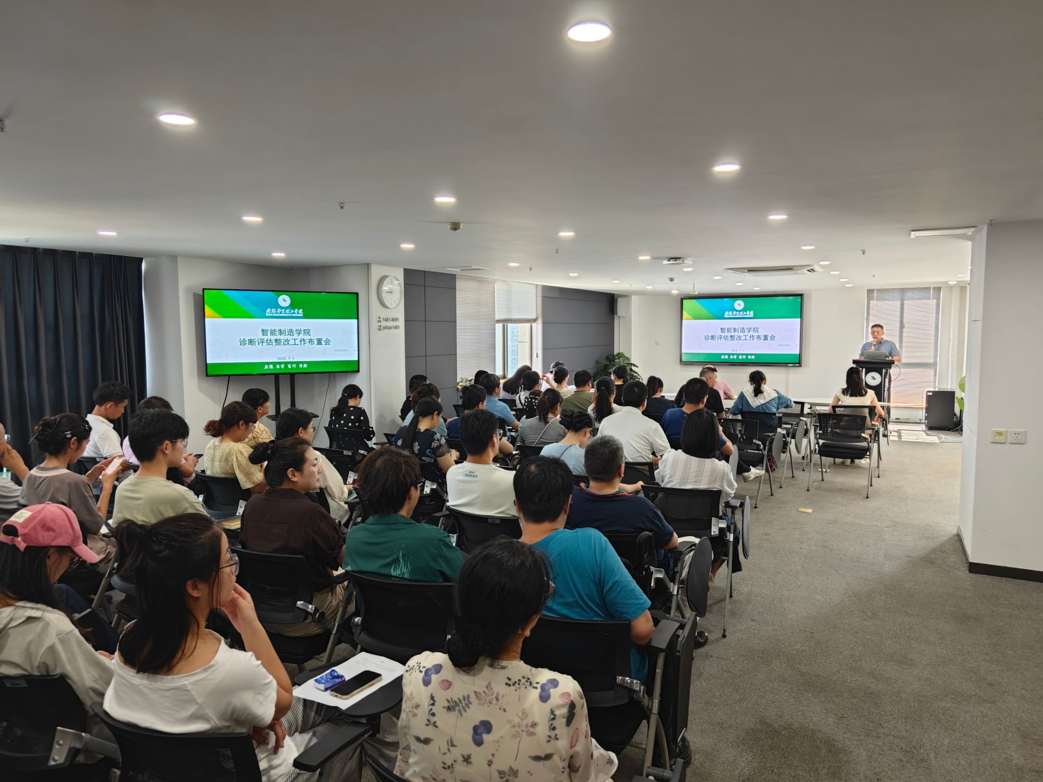 2025年7月1日上午9点,智能制造学院于行政楼1401召开诊断评估整改工作布置会,旨在确保学院各项诊断评估整改准备工作有条不紊地推进。学院领导班子及全体教职工共同参会。