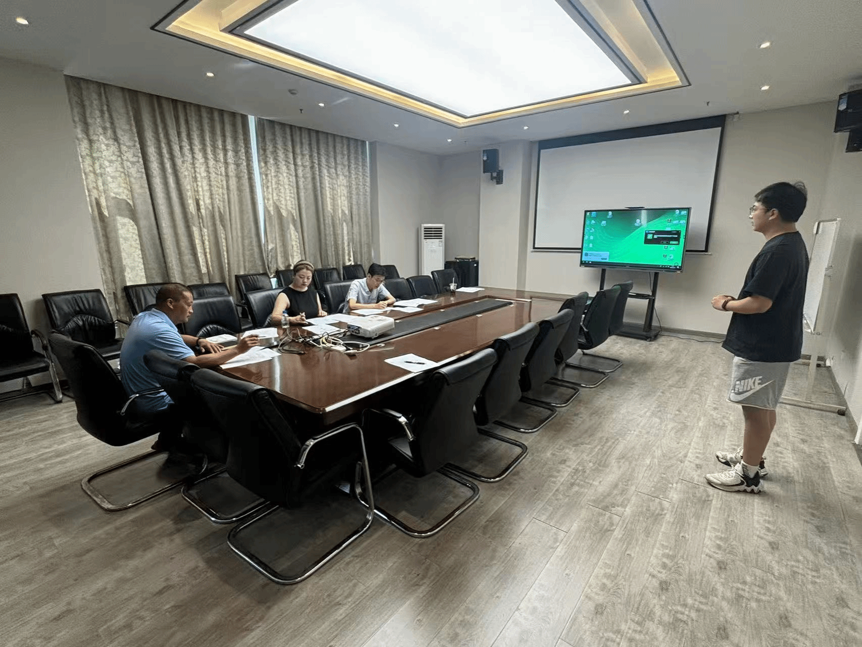 为进一步深化体育教育教学改革,8月28日10:30,体育学院体育教育系在体育馆二楼教研活动室举行“磨课”活动。学院党总支副书记毛峥毅、公体课部主任张莉萍受邀担任评委,张启龙、龙云、董科勇三位教师依次展示新开课程。活动以“20分钟模拟授课+课件演示+教学资料展示”的形式,围绕“教学设计、教学内容、教学方法、教学组织”四大核心要素,采用“授课—研讨—优化”闭环模式,帮助新进教师尽快“站稳、站好”讲台。