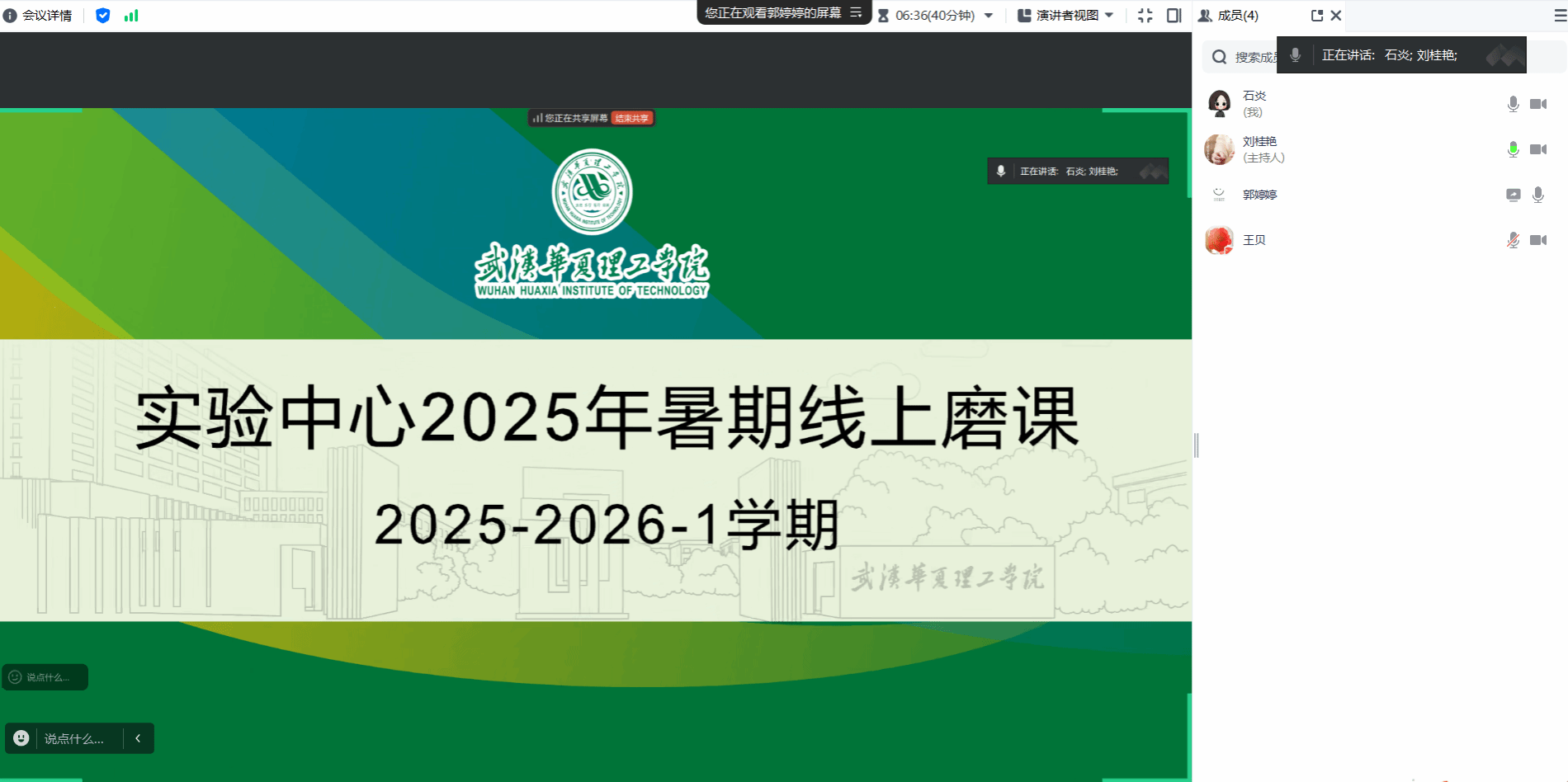 为进一步提升教师教学水平,优化课程设计,推动实验教学质量提升,我院实验中心于暑期组织开展了线上磨课活动。本次活动大家积极参与,通过集体研讨、模拟授课、互评互学等方式,为新学期的实验教学做好充分准备。