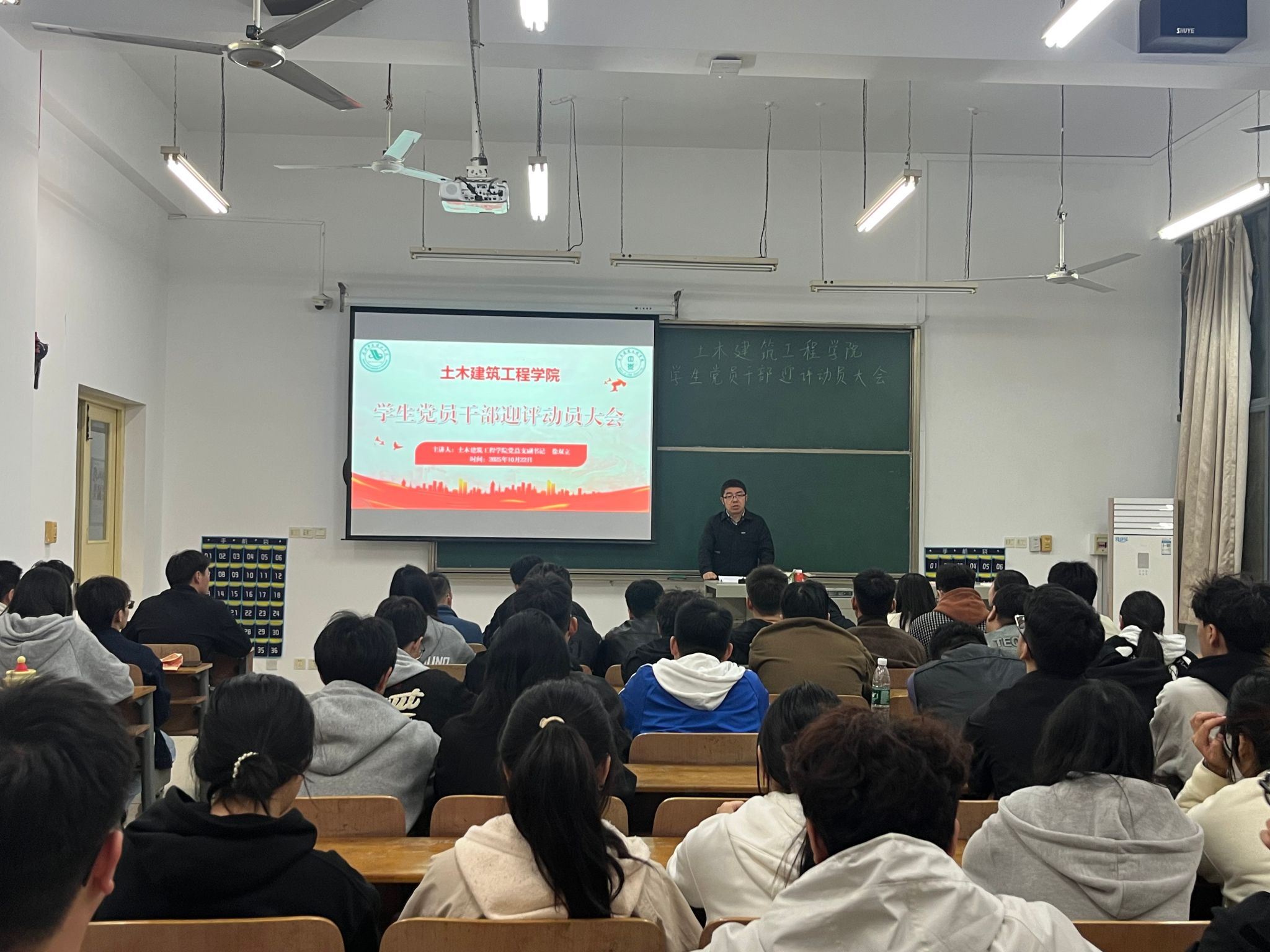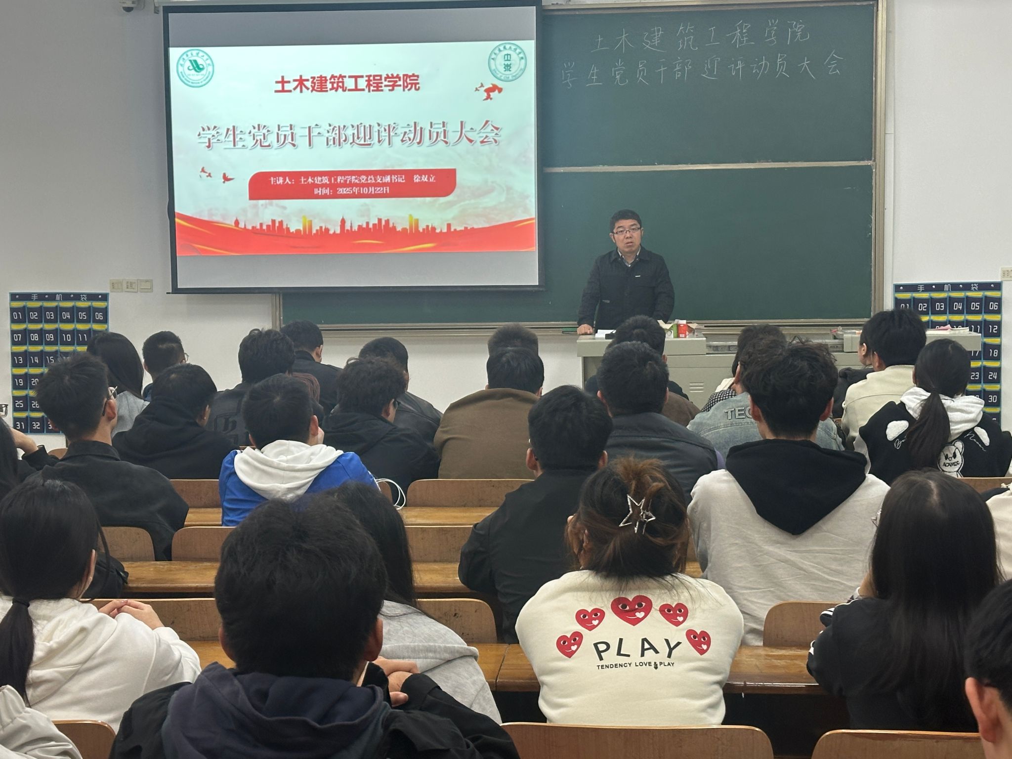 为全面凝聚学生骨干力量,扎实推进本科教育教学合格评估准备工作,10月22日下午6点,土木建筑工程学院召开党员学生干部迎评动员大会。学院党总支副书记徐双立主讲,辅导员杨柳、昌仪琳、黄呈、姚卓夫、程鹏和全体学生党员及学生干部参会。