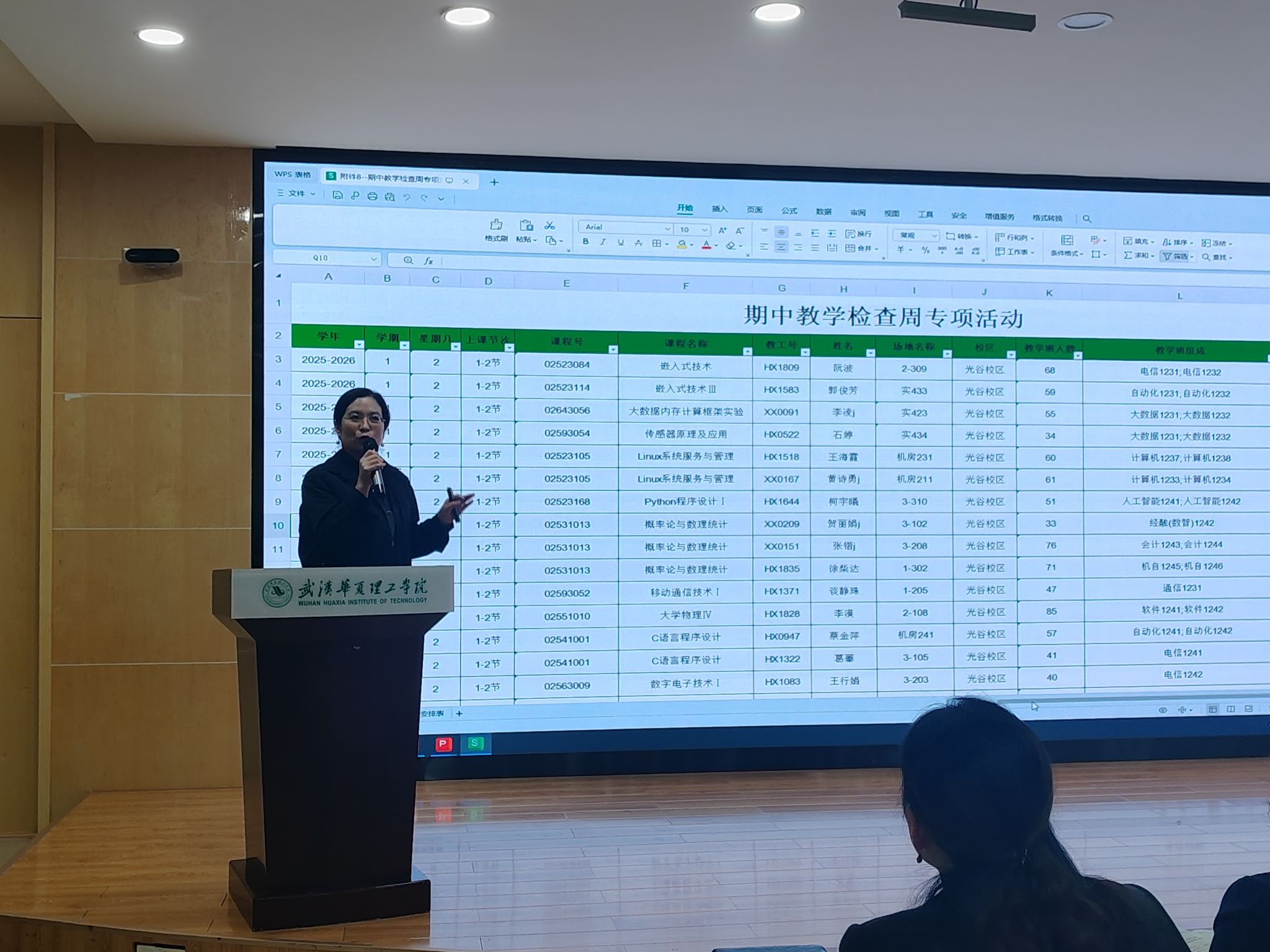 王绪梅副院长部署了学院制定的“任课教师主抓,助课教师协助,巡课教师督导、辅导员老师配合”的四位一体的课堂秩序保障体系,并就近期的期中教学检查工作进行了布置。