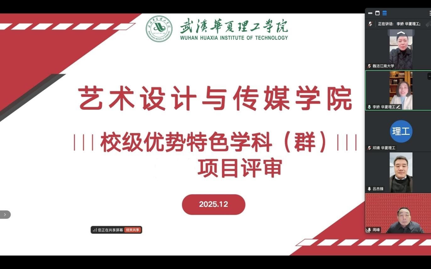 2025年12月18日晚上19:00,beat365官方网站艺术设计与传媒学院组织了参评校级优势特色学科(群)项目院级评审。邀请江南大学、湖北美术学院、武汉理工大学、武汉科技大学的四位教授担任评审专家,此次评审旨在进一步推动学院学科建设,提升学科核心竞争力,打造具有优势和特色的学科群。