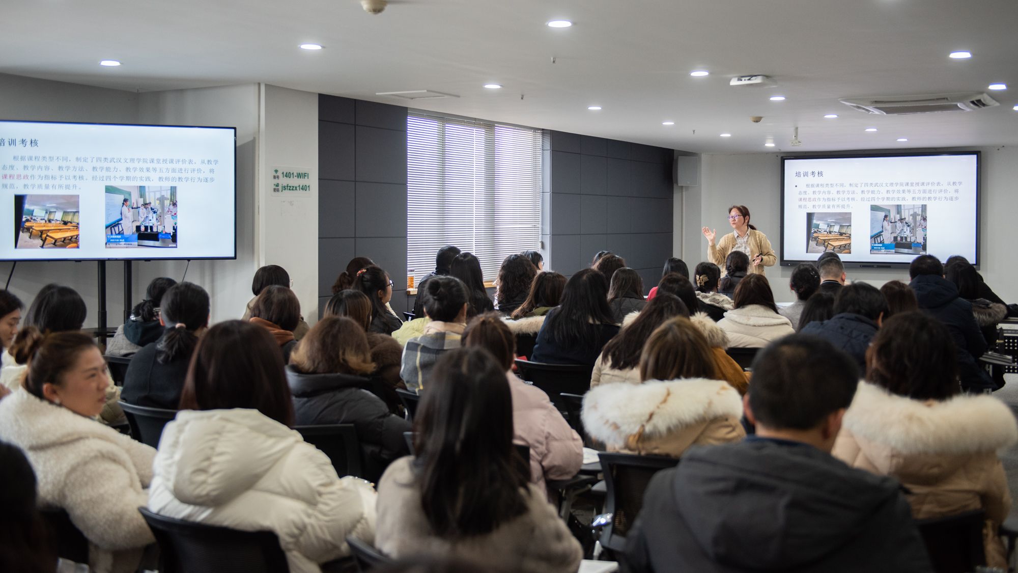 为有效推动本科教学合格评估工作,2月27日下午,人力资源部教师发展中心联合教务部,共同举办教学管理队伍培训,邀请武汉文理学院质量监控与评估中心主任彭彬副教授,作题为“人才强校 质量兴校 制度治校”的主题讲座。学校副校长李猜、教务部部长梁梦凡、质量监测与评估中心主任陈泽烨、教学督导办公室主任潘连柏、各学院副院长、以及全体教学管理人员参加了讲座。