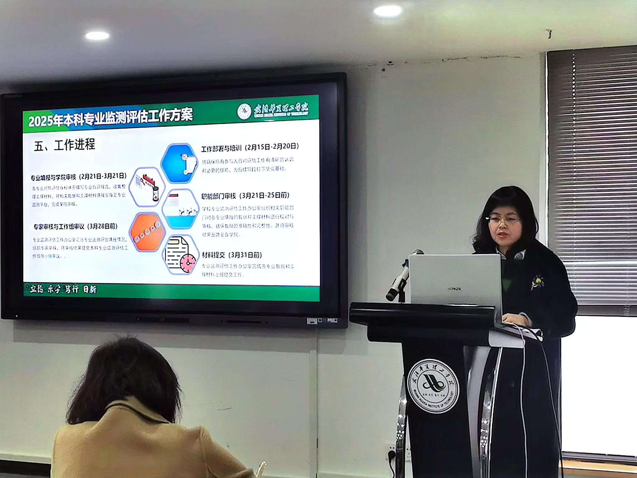 李猜副校长强调,本次专业监测评估是湖北省教育系统的一项重要工作,旨在通过数据化的评估体系,推动全省高校专业的优胜劣汰,促进高等教育改革和区域经济发展。她强调,评估结果将直接影响学校的招生计划、学费调整、学位授予等资源配置,对学校的未来发展至关重要。各学院、各专业要高度重视,认真准备,确保评估数据的真实性和准确性。学校也将加强对评估工作的监督和指导,确保评估工作的顺利进行。