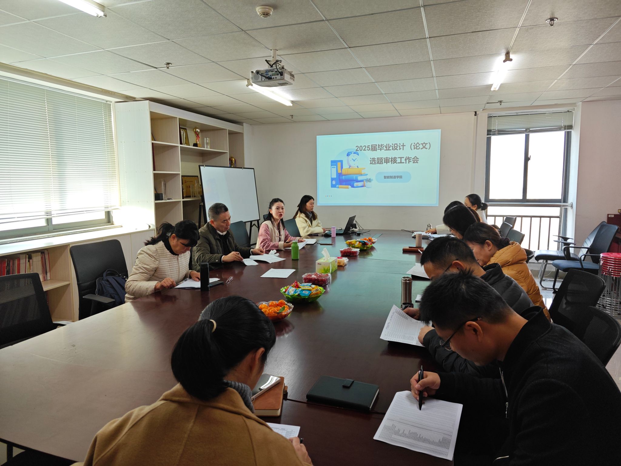 12月5日上午9:00,智能制造学院在综合楼919室召开了2025届毕业设计(论文)选题评审工作会。会议由教学副院长汪芳主持,各专业系主任及评审专家参会。
