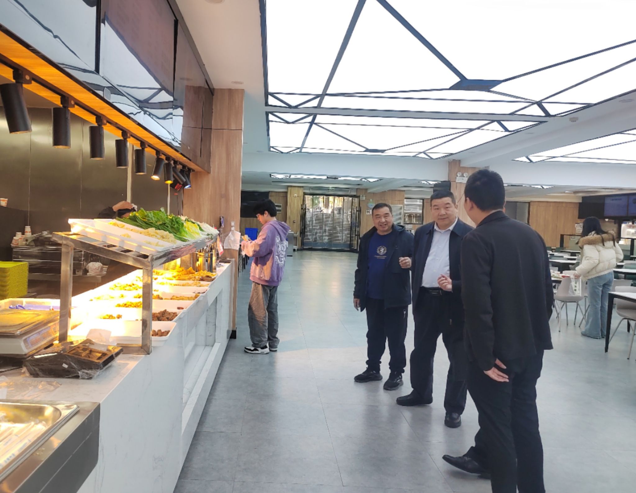 调研过程中,校领导一行实地走访了食堂及学生宿舍,详细了解食堂菜品种类、价格及“明厨亮灶”工程实施情况,并对校园公共区域文化环境建设进行了调研。