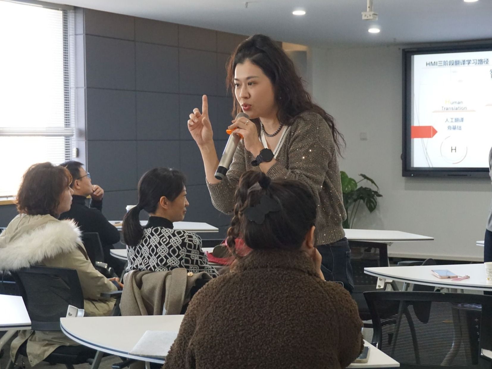 活动过程中,张薇薇教授分享了她主讲的“翻译技巧与实践”课程,不断参加各级各类教学大赛从而获得教学改革成果的经验。课程团队以“新文科”为指引,秉承“以学生发展为中心,数智融合,培养智慧译者”的教学理念,通过内容重构、环境重设、过程重建和评价重置,探索“人文启智,数字赋能”的教学实践路径,创新SDSD·er翻译课程教学模式,涵养学生的人文内核、数字素养及思辨能力,有效提高了课程的人才培养质量。
